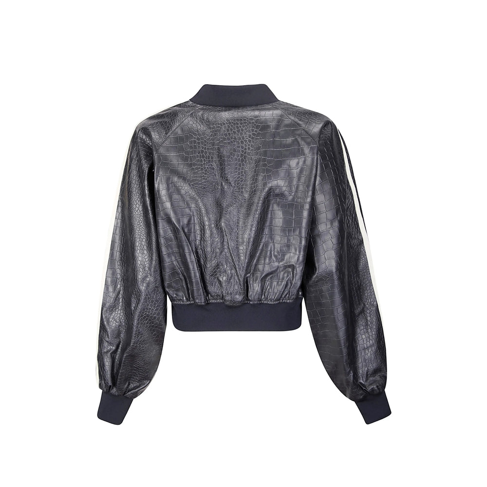 black embossed three stripes rib knit trim front zip fastening long sleeves