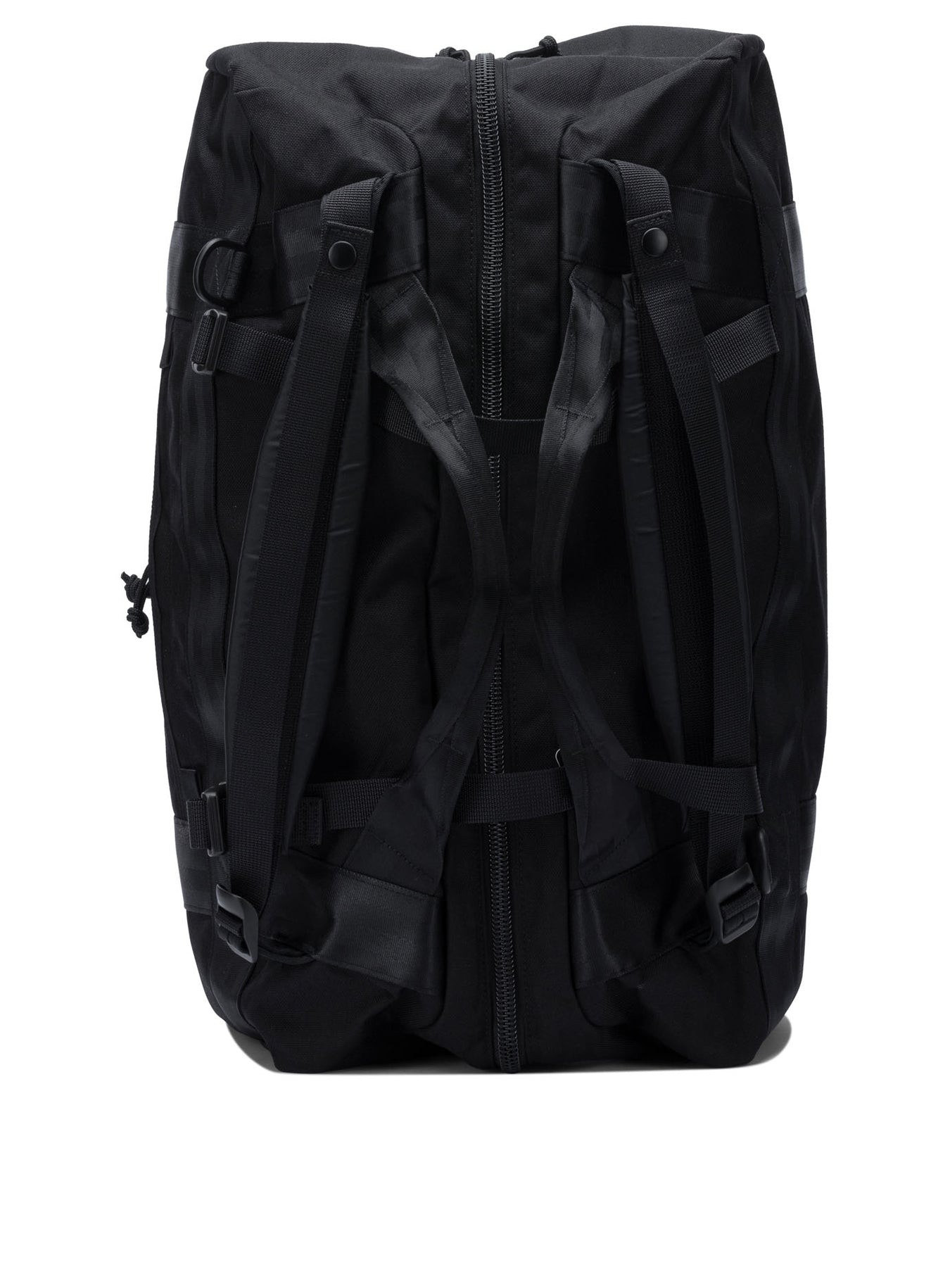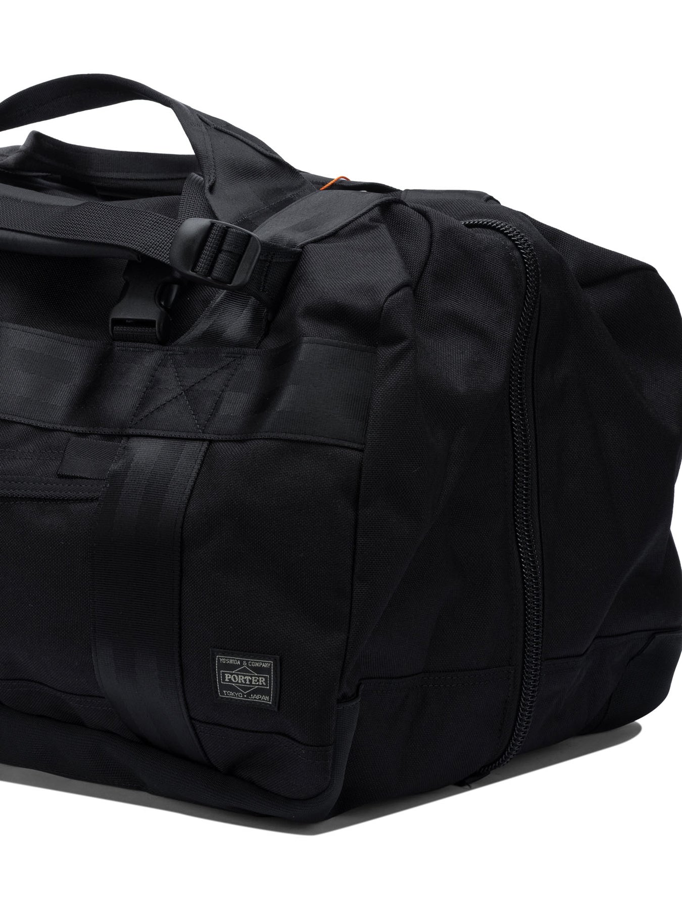 "Booth Pack 3Way" Porter-Yoshida & Co. "Booth Pack 3Way" duffle bag Made of tear- and friction-resistant 1000-denier Cordura nylon construction with stitched tape reinforcements on the corners subjected to the most stress. Silhouette allows for hand, shoulder or backpack use via configurable handle, shoulder strap and shoulder straps, all located on the same top side for quick change of carry. The main compartment opens fully and features internal zippered separation. || - Suitcase-style opening with fully accessible main compartment - Separable zippered interior - Removable shoulder strap and adjustable webbed shoulder straps - Bartack reinforcement on points subject to high load - Corners reinforced with stitched tape
