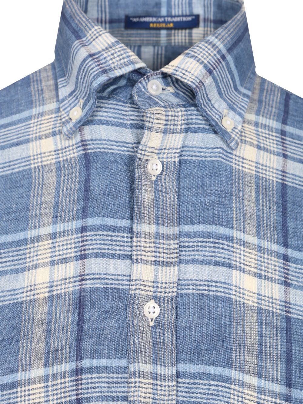 B D Baggies "Bradford" linen shirt, with structured button-down collar, front button fastening and small label sewn onto the hem