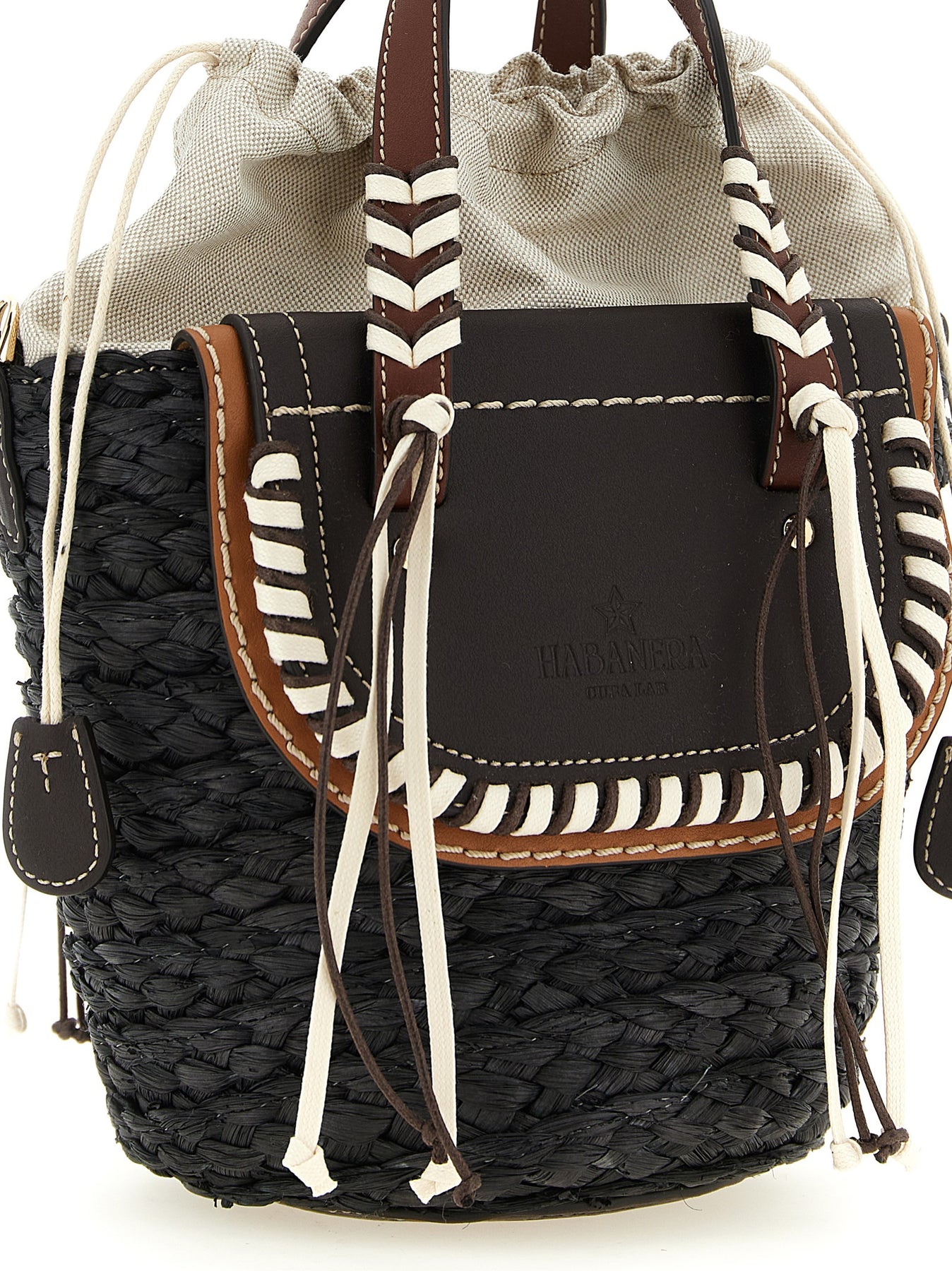 Cuba Lab x SanPa 'Habanera Cuoieria' handbag in woven raffia, suede flaps and double fixed Kenyan handle decorated with double woven waxed cord, linen pouch lining with drawstring closure, adjustable and removable shoulder strap. Produced in Italy by SanPatrignano, with love. Handcrafted product, any imperfections are to be considered characteristics of uniqueness. SUSTAINABLE: Product made with recycled materials.