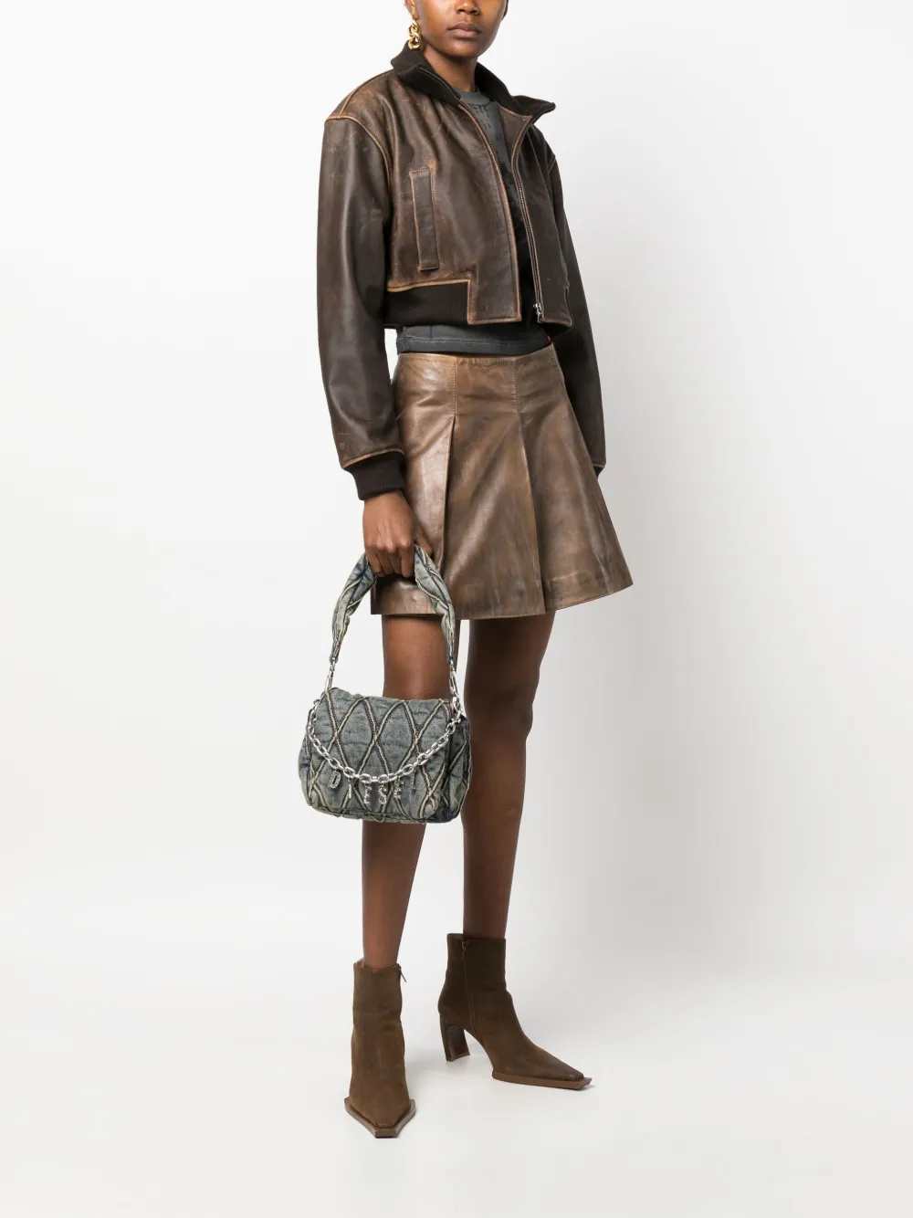 Charm-D S Denim Shoulder Bag Features Light blue, cotton, denim, quilted design, chain detail, silver-tone hardware, removable shoulder strap, crystal embellishment, foldover top with magnetic closure, internal logo patch, internal logo patch, and single compartment. Origin: Italy Product Dimensions Depth: 9 cm (3.54 in) Handle: 20 cm (7.87 in) Height: 16 cm (6.29 in) Shoulder Strap: 102 cm (40.15 in) Width: 21 cm (8.26 in) Composition Exterior: 100% cotton, 100% zinc, 100% iron Lining: 100% cotton ID X09597P5570
