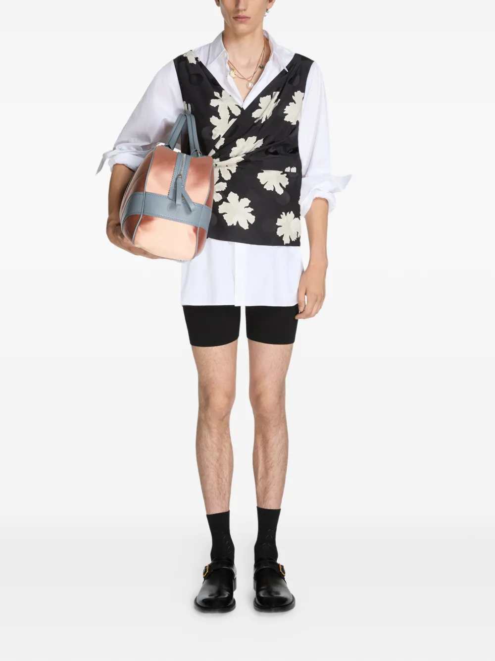 Paneled Duffel Bag Beige and blue paneled design, two top handles, top zip closure, adjustable, removable shoulder strap Origin: Italy Composition Exterior: 58% viscose, 22% silk, 20% calfskin ID 2610215000659