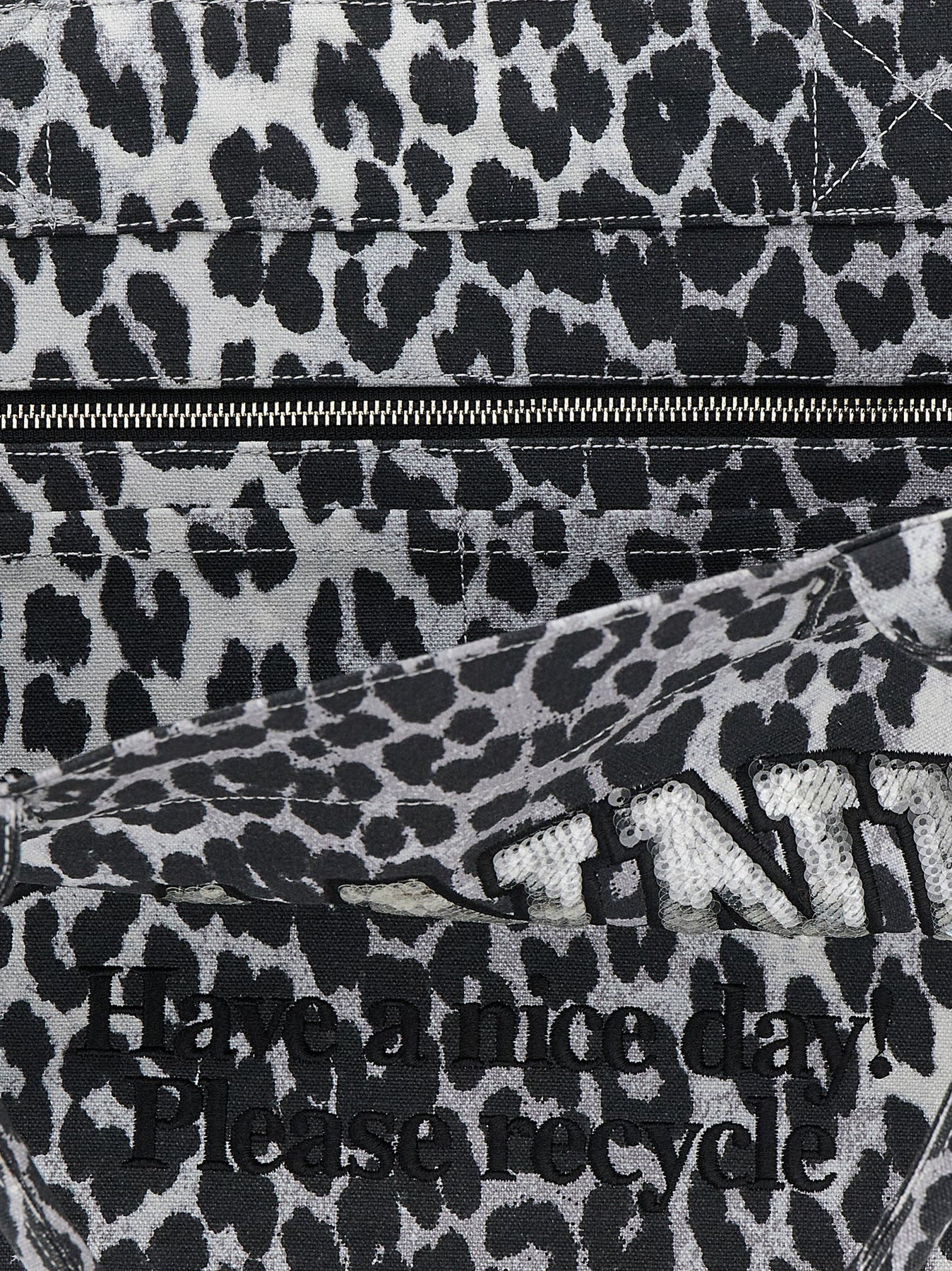 'Leopard Medium Tote' canvas shopping bag with embroidery with front sequin application, double fixed handle. SUSTAINABLE: This product is made with recycled cotton.