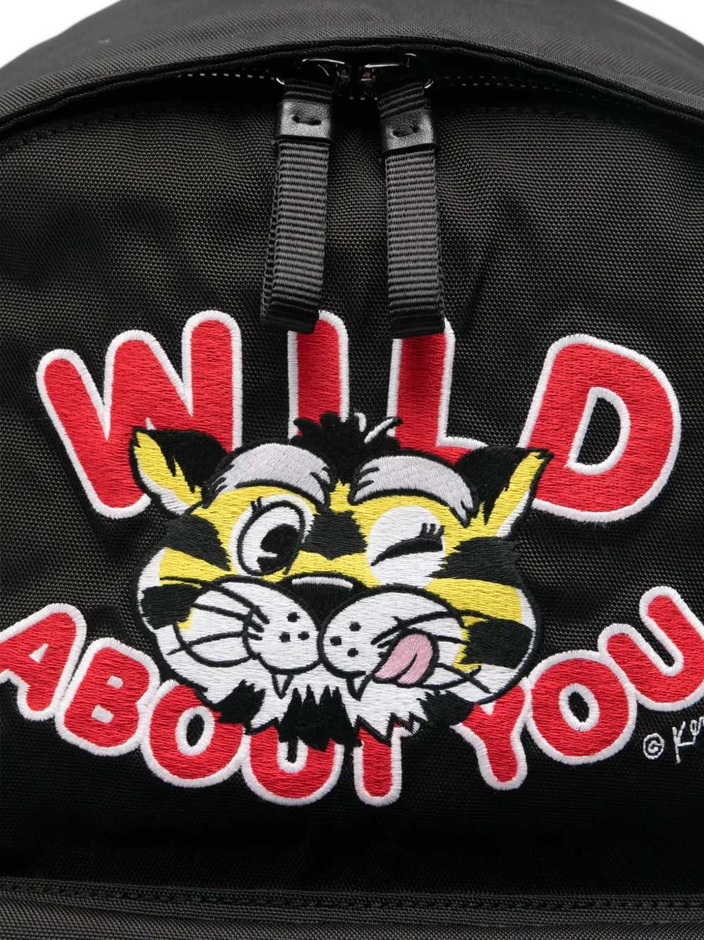 Wild Tiger Backpack Features Black Graphic print Handle Front zip pocket Top zip closure Adjustable shoulder straps Composition Exterior: 100% polyester Lining: 100% cotton ID: FG55SA603F21 Product Dimensions Depth: 12 cm Height: 42 cm Width: 34 cm