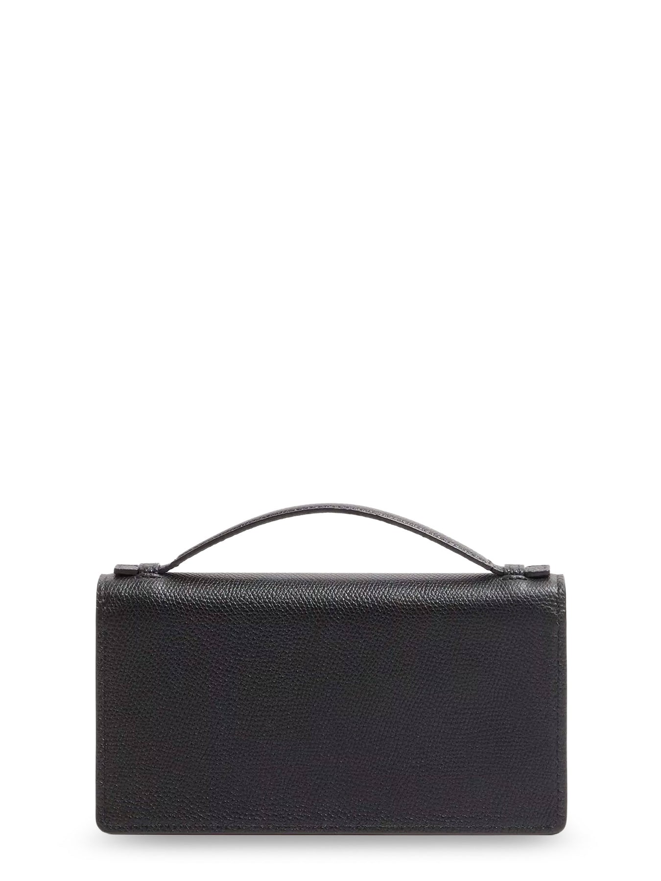 Leather handle Flap closure with magnetic button Removable metal shoulder strap Metal logo on the front Made in Italy Leather W: 19 cm, H: 11 cm, D: 3 cm SKU: 8W2P0W42SNP0NO