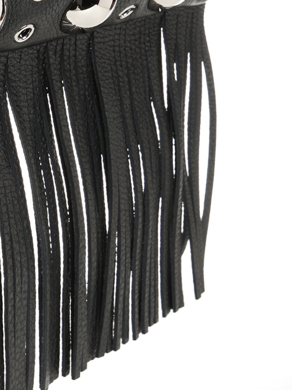 Valentino Garavani Nellcôte shoulder bag in grained calfskin with fringes and profile decorated with sphere studs and rivets, adjustable suede shoulder strap