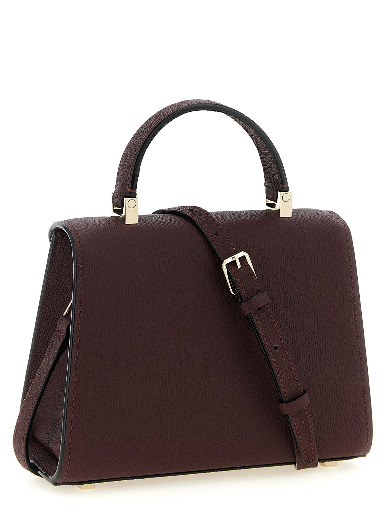 Micro 'Iside' crossbody bag in Millepunte calf leather, Costa Valextra piping, fixed handle, flap turn-lock closure, metal details, adjustable and removable shoulder strap.