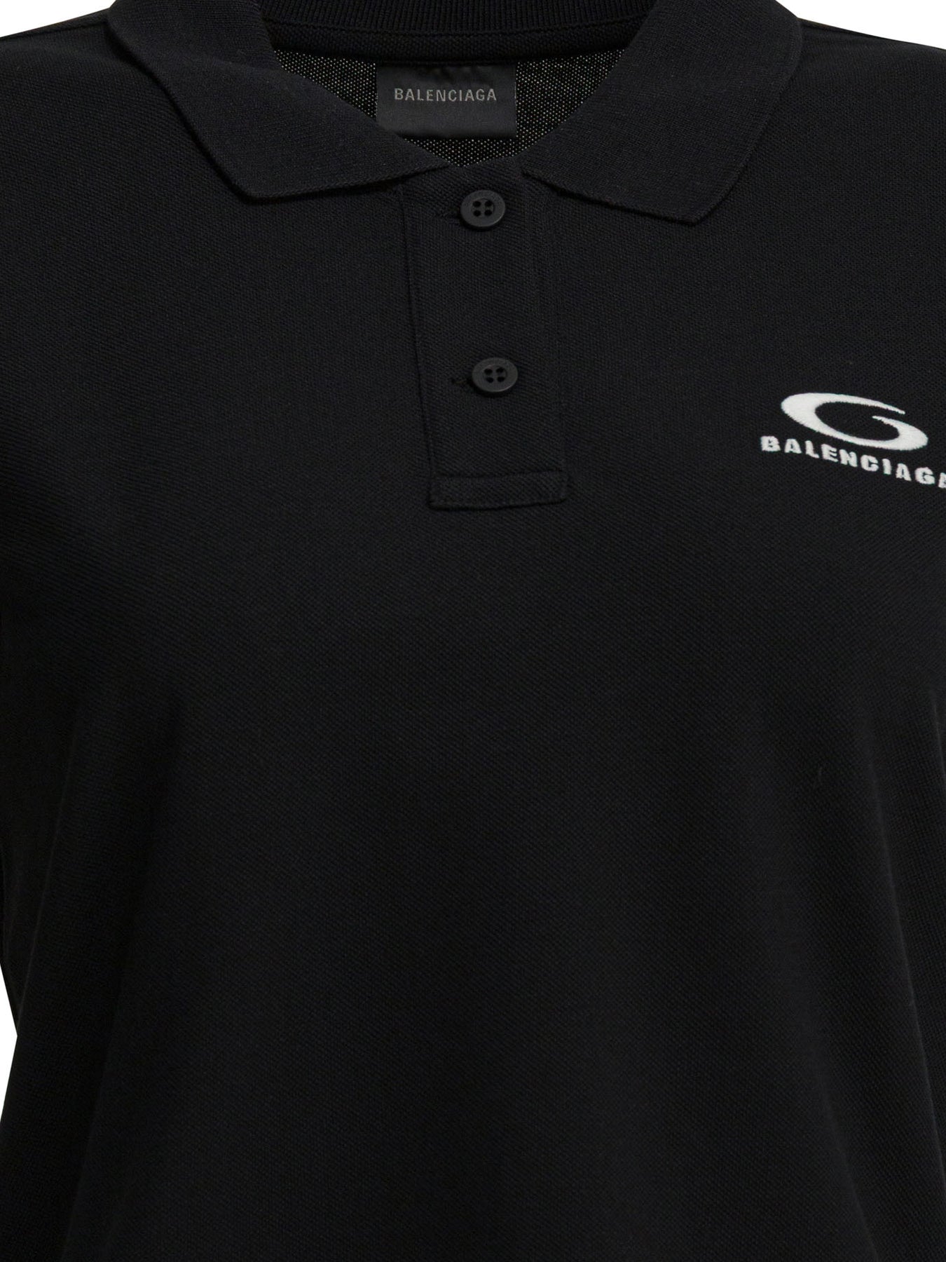 Balenciaga's "Loop Sports Icon" polo shirt features a compact construction in cotton fabric. The silhouette is defined by a boxy construction and a straight line at the shoulders. The design features buttons on the front and short sleeves. The applied Loop Sports Icon logo adds a graphic detail. Seams are visible at the points where the sleeve and torso connect, while the collar retains a stiff, minimalist shape. || - Loop Sports Icon logo on the front - Short sleeves - Polo shirt with buttons - Classic collar - Boxy fit