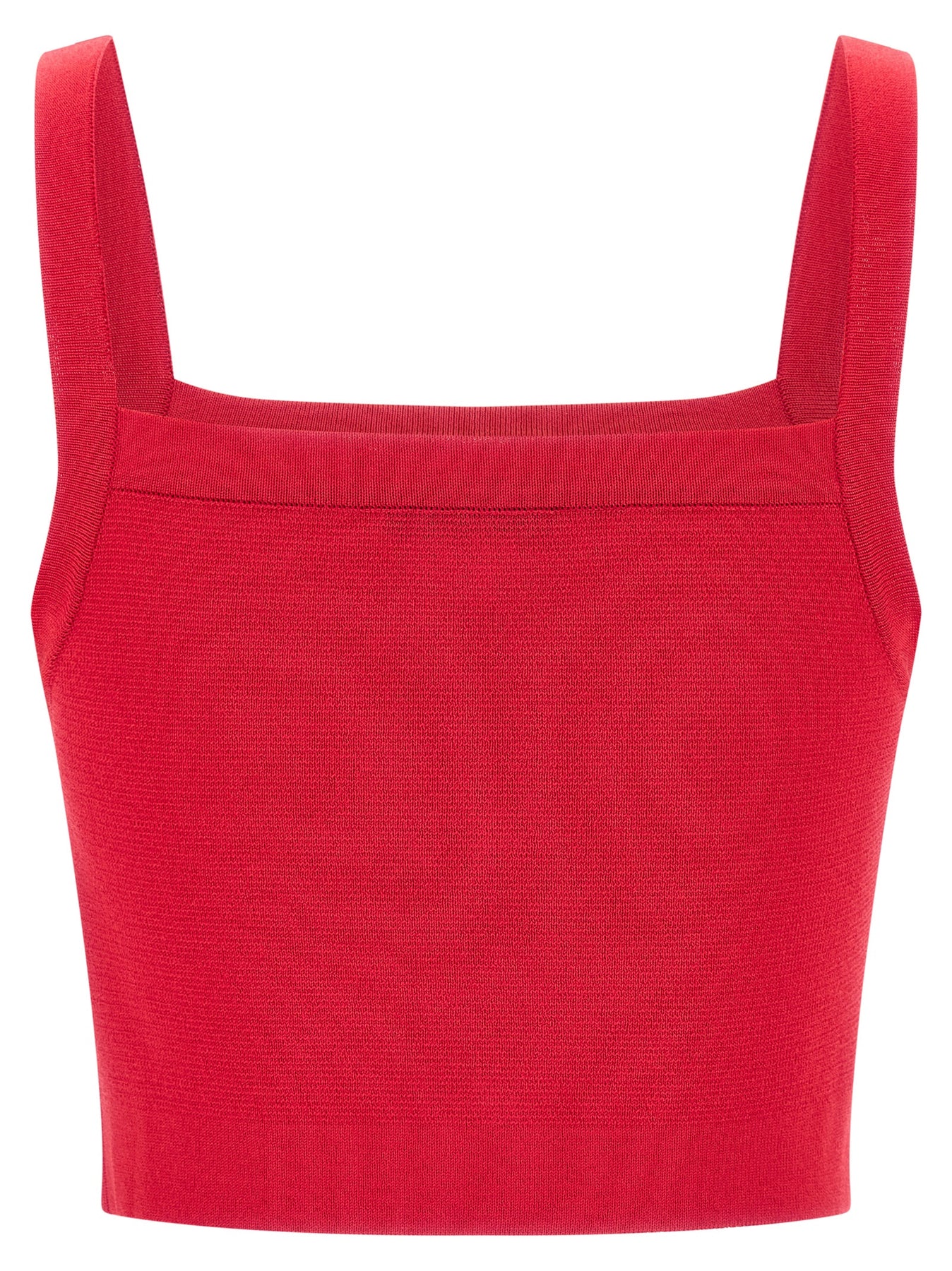 Shiny effect viscose knit top with 3 front 'Testa di leone' cropped button detail with thin straps.