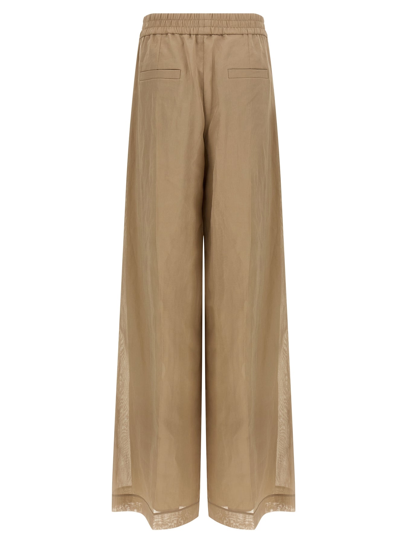 'Loose Track' cotton organza pants, pince, wide leg, stretched pleat, elastic waistband, pockets, full lining in crêpe and silk blend.