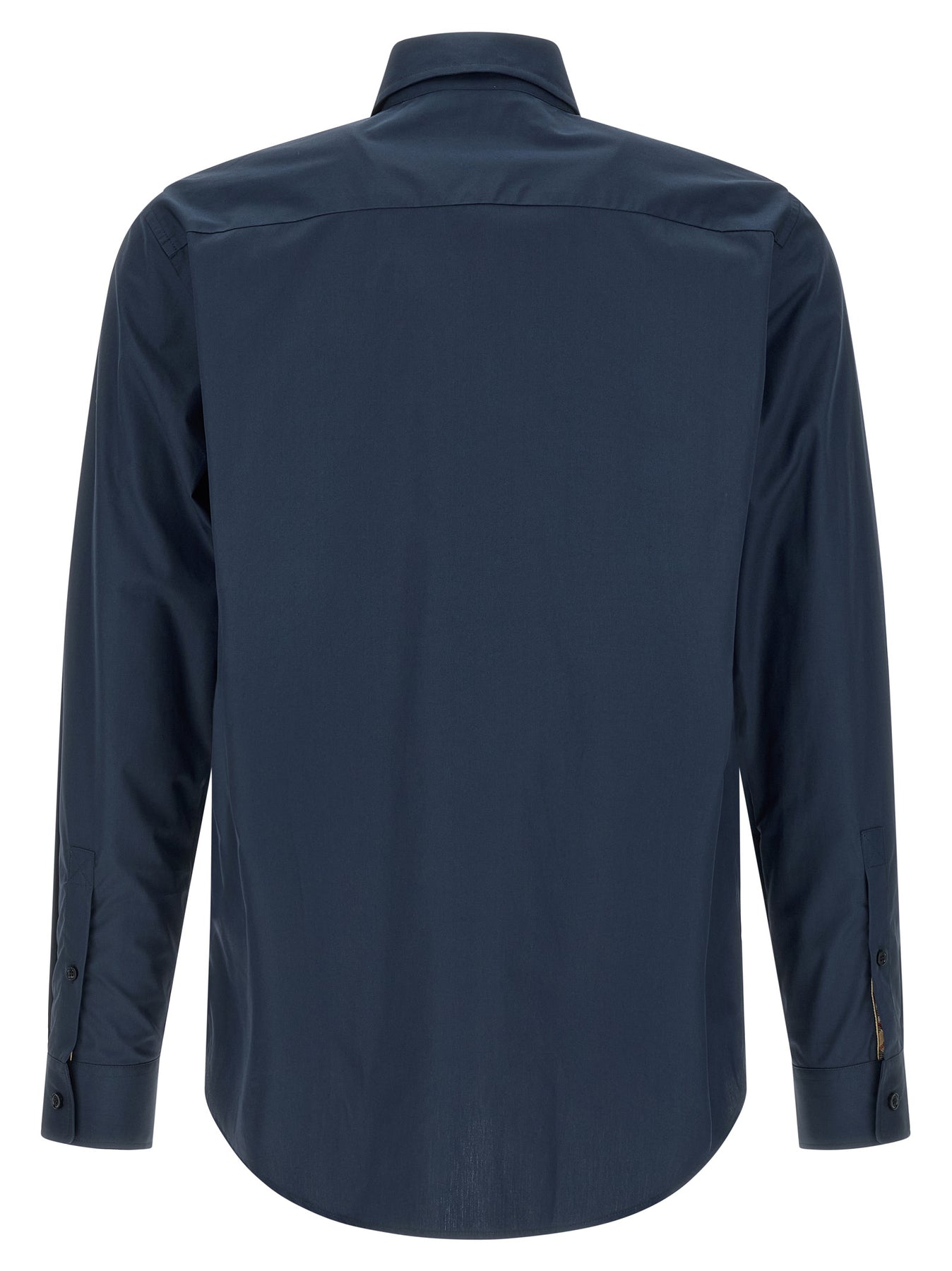 'Sam' cotton poplin shirt with Burberry Check inner details, tone-on-tone 'Equestrian Knight Design' logo embroidery and front button closure, long cuffed sleeves and rounded hem.