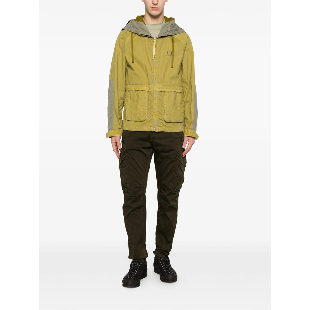 green drawstring hood front zip fastening front flap pockets long sleeves straight hem