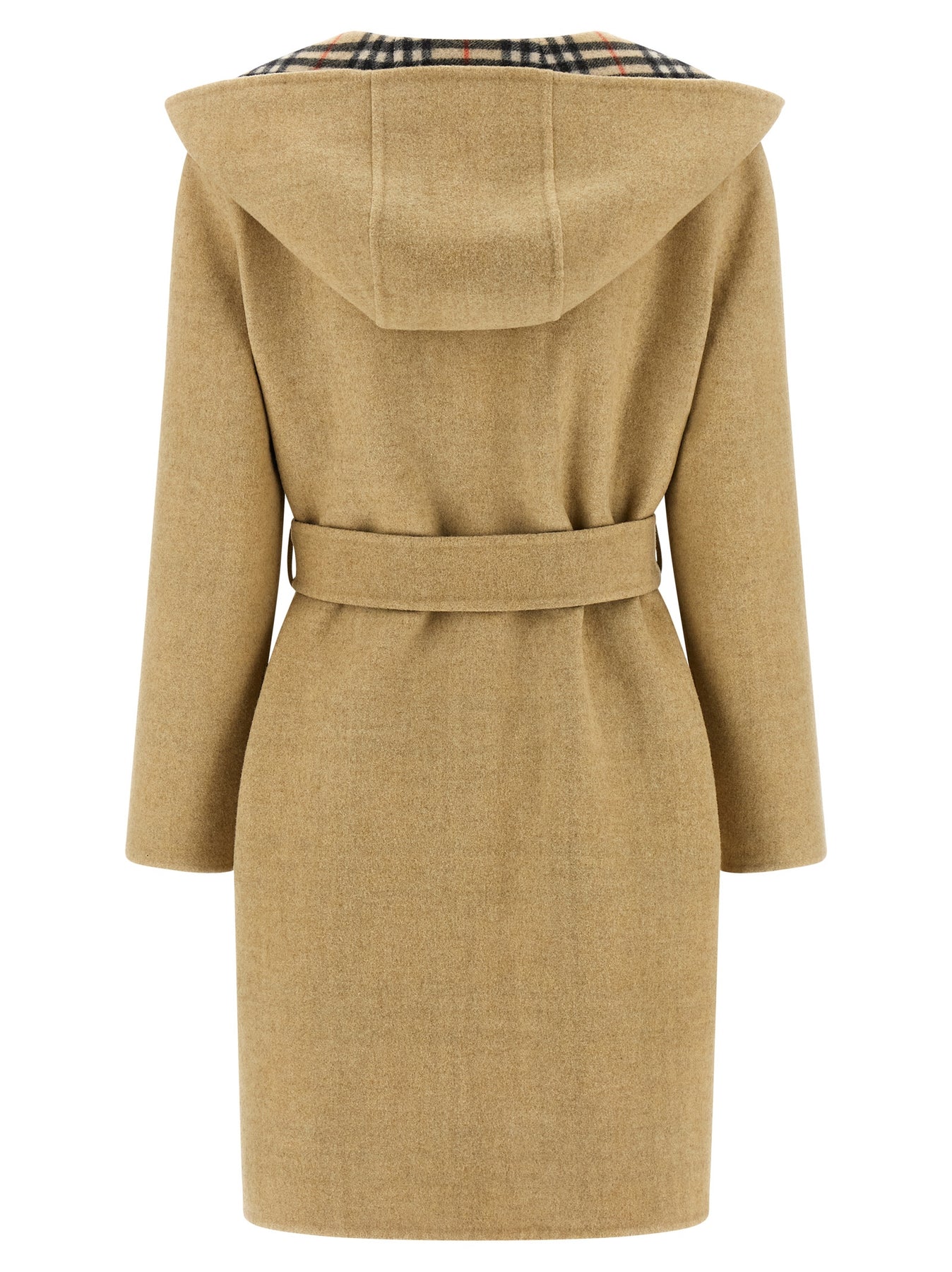 Reversible 'Hampshire' solid colour boiled wool coat with all-over Burberry Check print, dressing gown style, hood and removable belt.