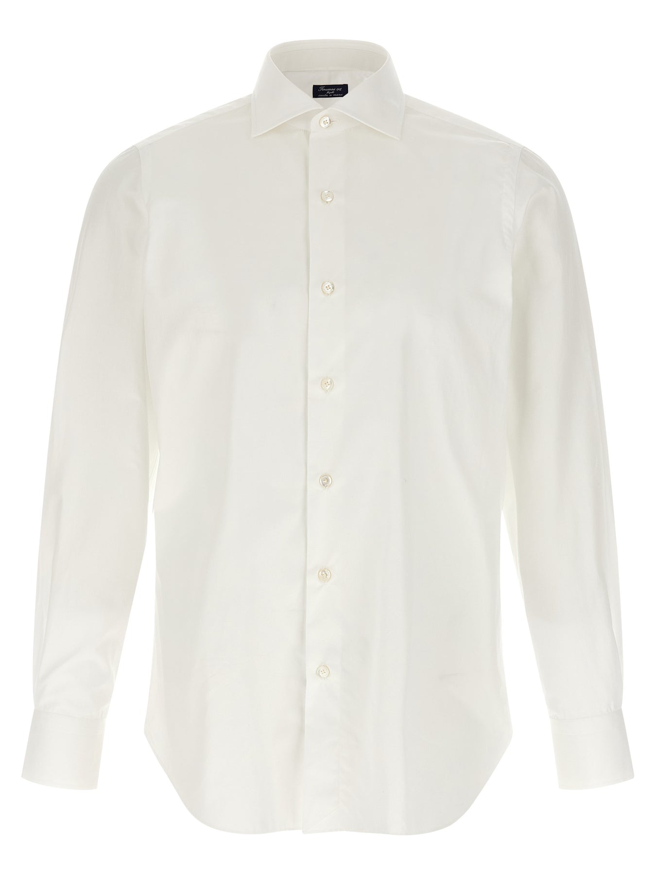 'Napoli' shirt in 120 double twist cotton hand-sewn according to the Neapolitan sartorial tradition performing seven steps of embroidery, French 'Eduardo' collar with removable cue, front mother-of-pearl button closure with the classic lily stitching and embroidered buttonholes, long sleeves with round and typical cuffs " arriccio" that guarantees comfort and freedom of movement, rounded hem with tone-on-tone satin logo detail on the side slits.