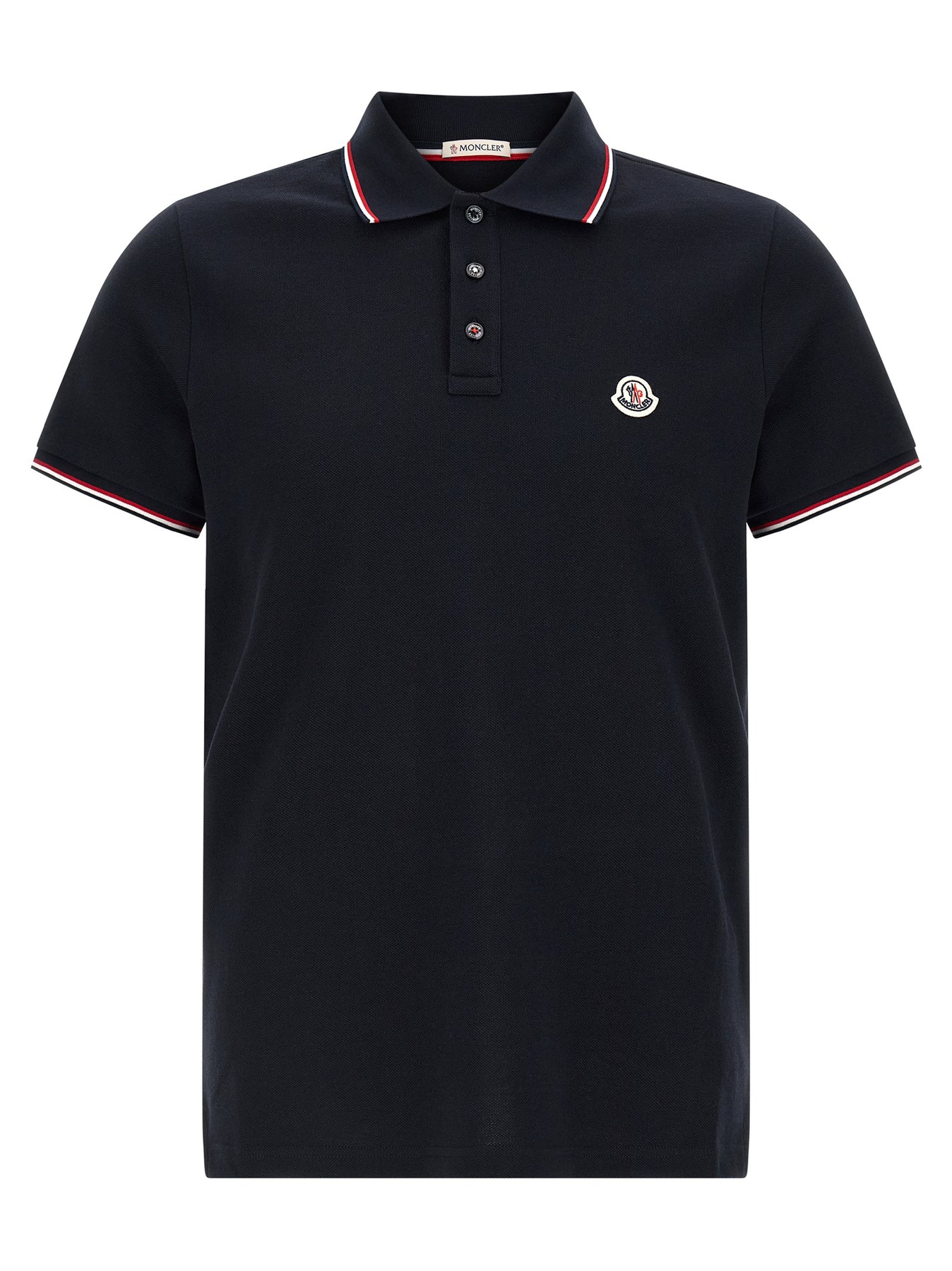Cotton piquet polo shirt with tricolor details, front felt logo patch, collar and buttons, short cuffed sleeves, side slits.
