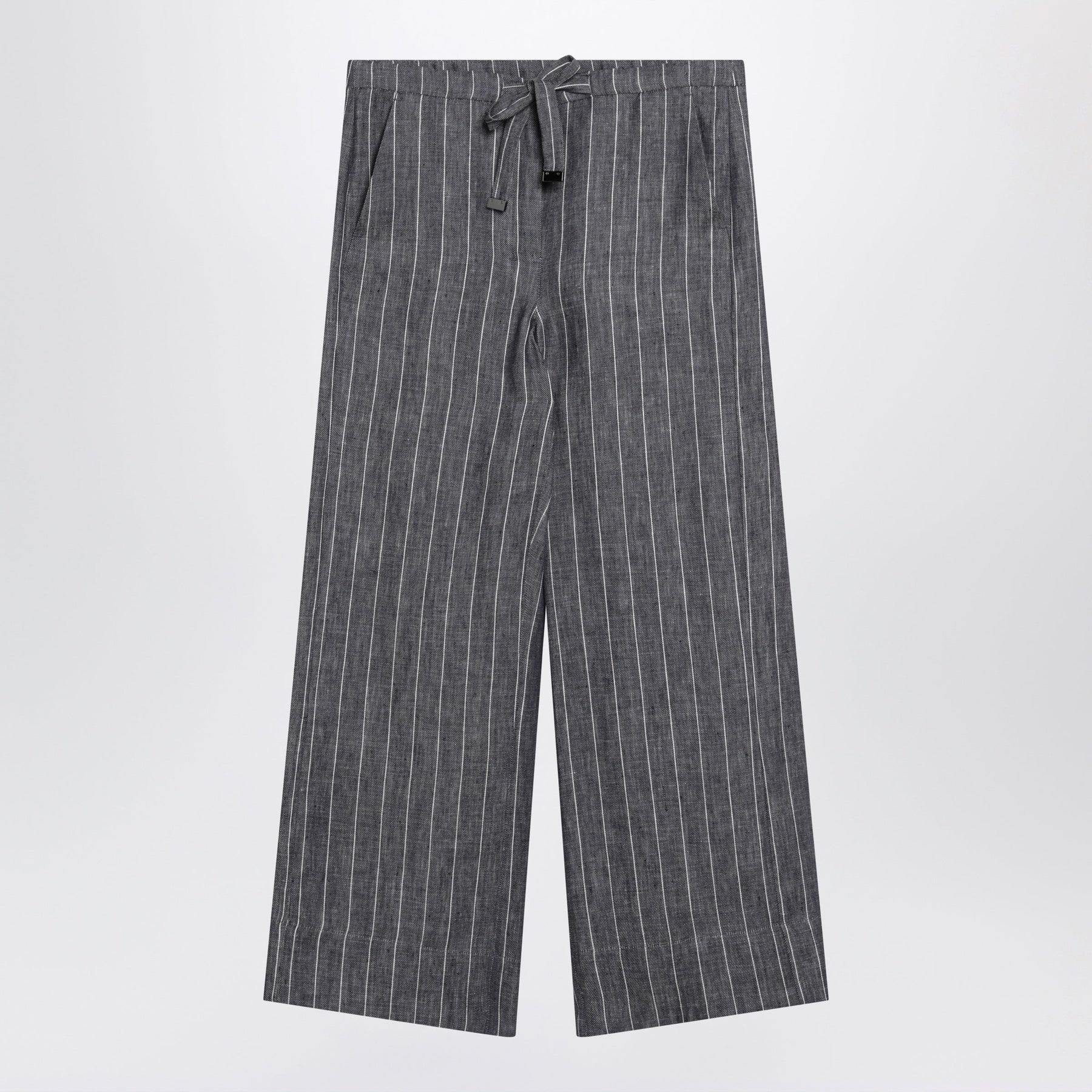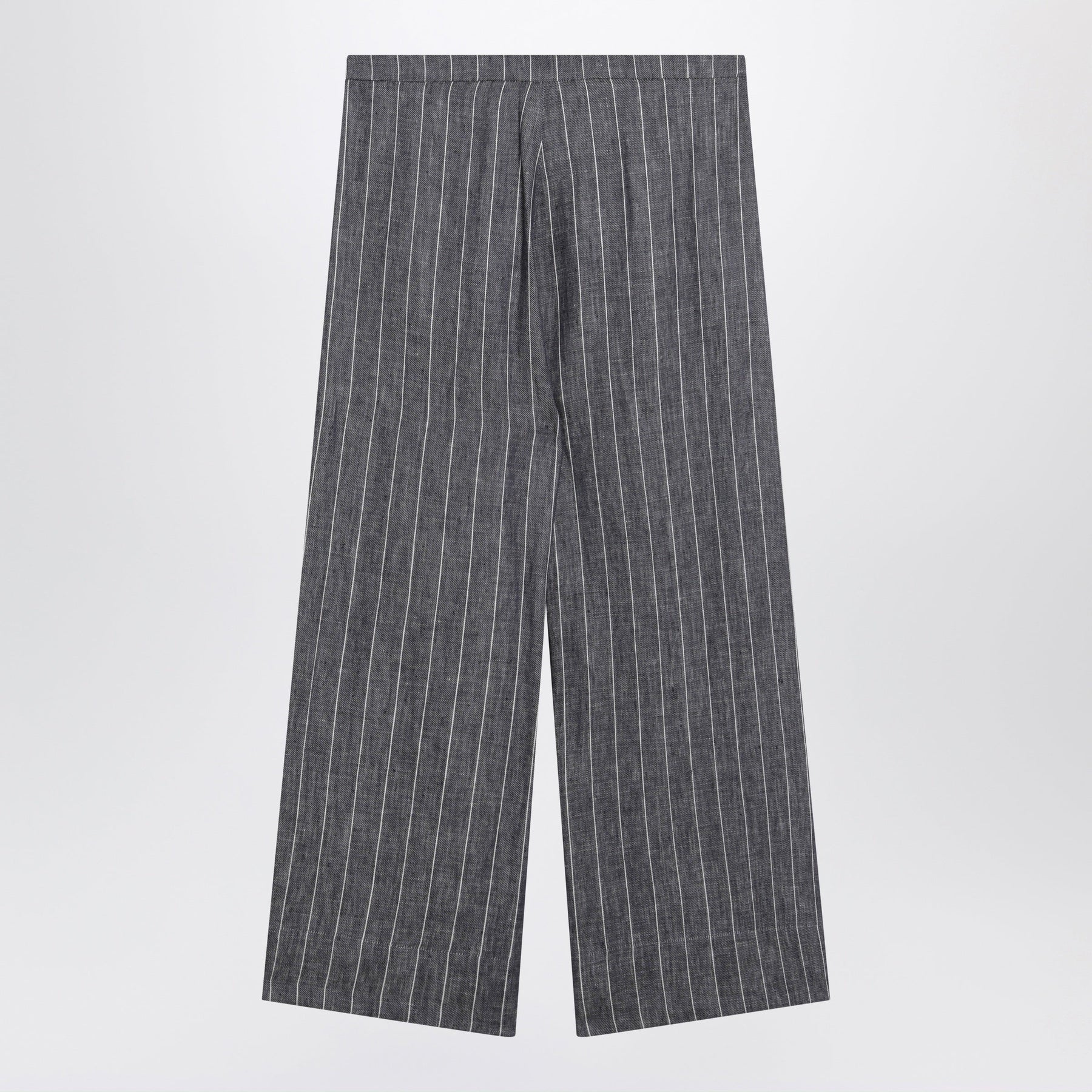 Navy Blue Denim-Effect Pinstripe Linen Trousers