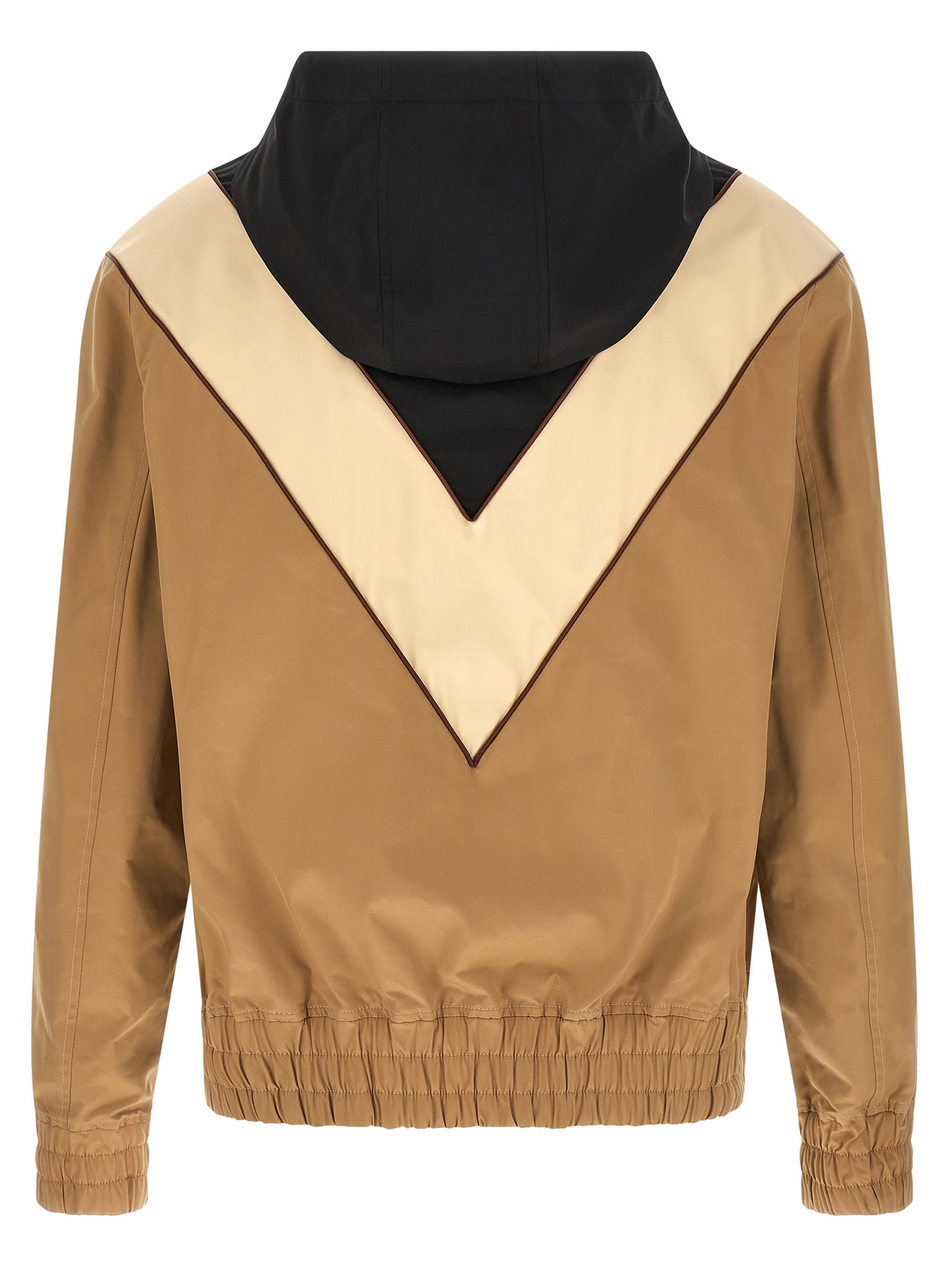 Valentino' nylon windbreaker with panel construction, adjustable hood, leather patch with antiqued effect metal VLogo and front zip closure, pockets, long sleeves with elastic cuffs, elastic hem.