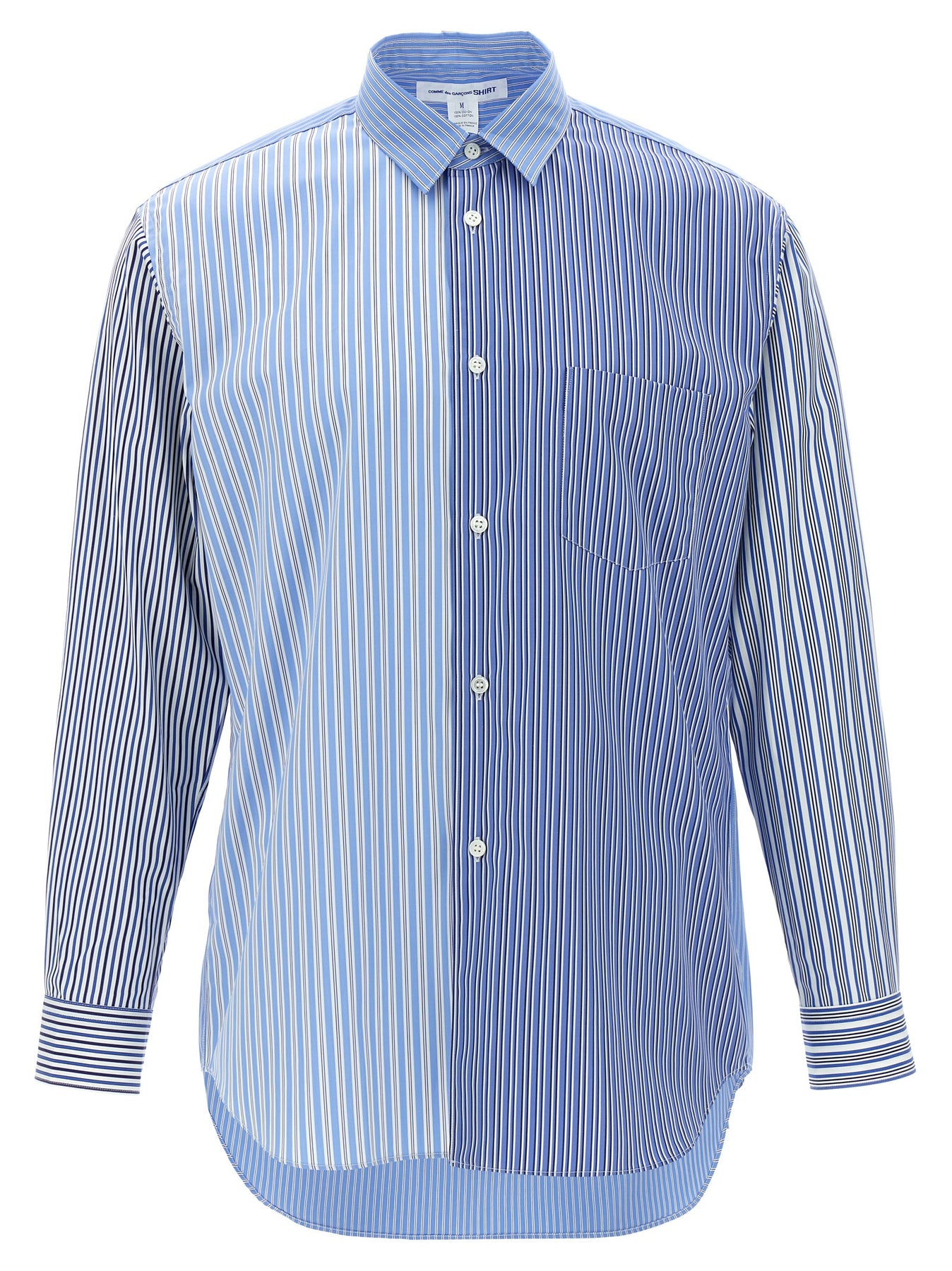 'Forever' striped cotton poplin shirt, chest pocket, button closure, long cuffed sleeves.
