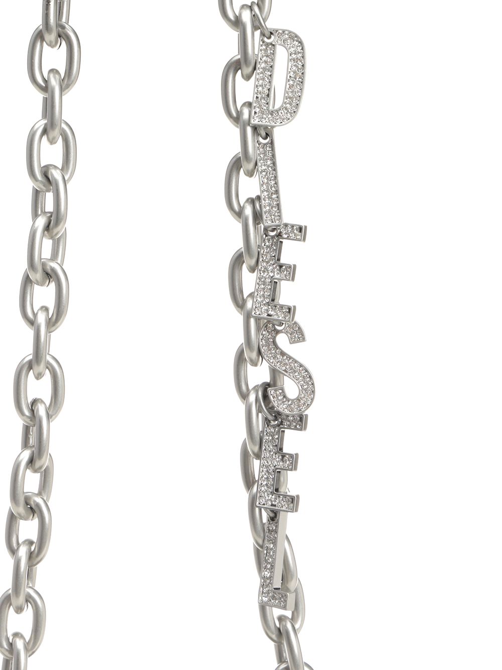 Charm-D S-Bucket bag in quilted and treated denim closes with a drawstring and is completed by a chain and denim shoulder strap.