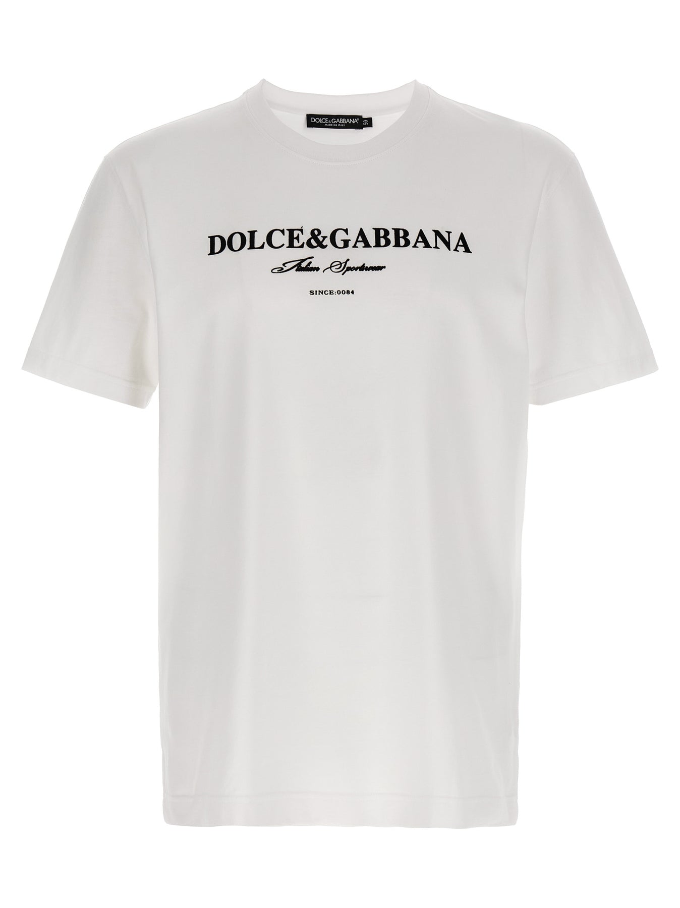 Cotton jersey T-shirt with front Flock logo print, crew neck, short sleeves.