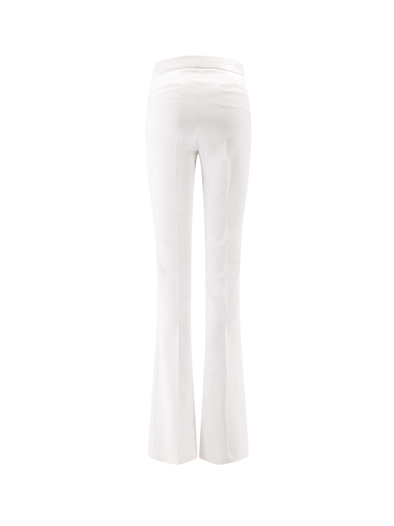 Side zip closure High-waisted Metal monogram Flared bottom leg Made in Italy 96% polyester, 4% elastane SKU: PA16961E2360