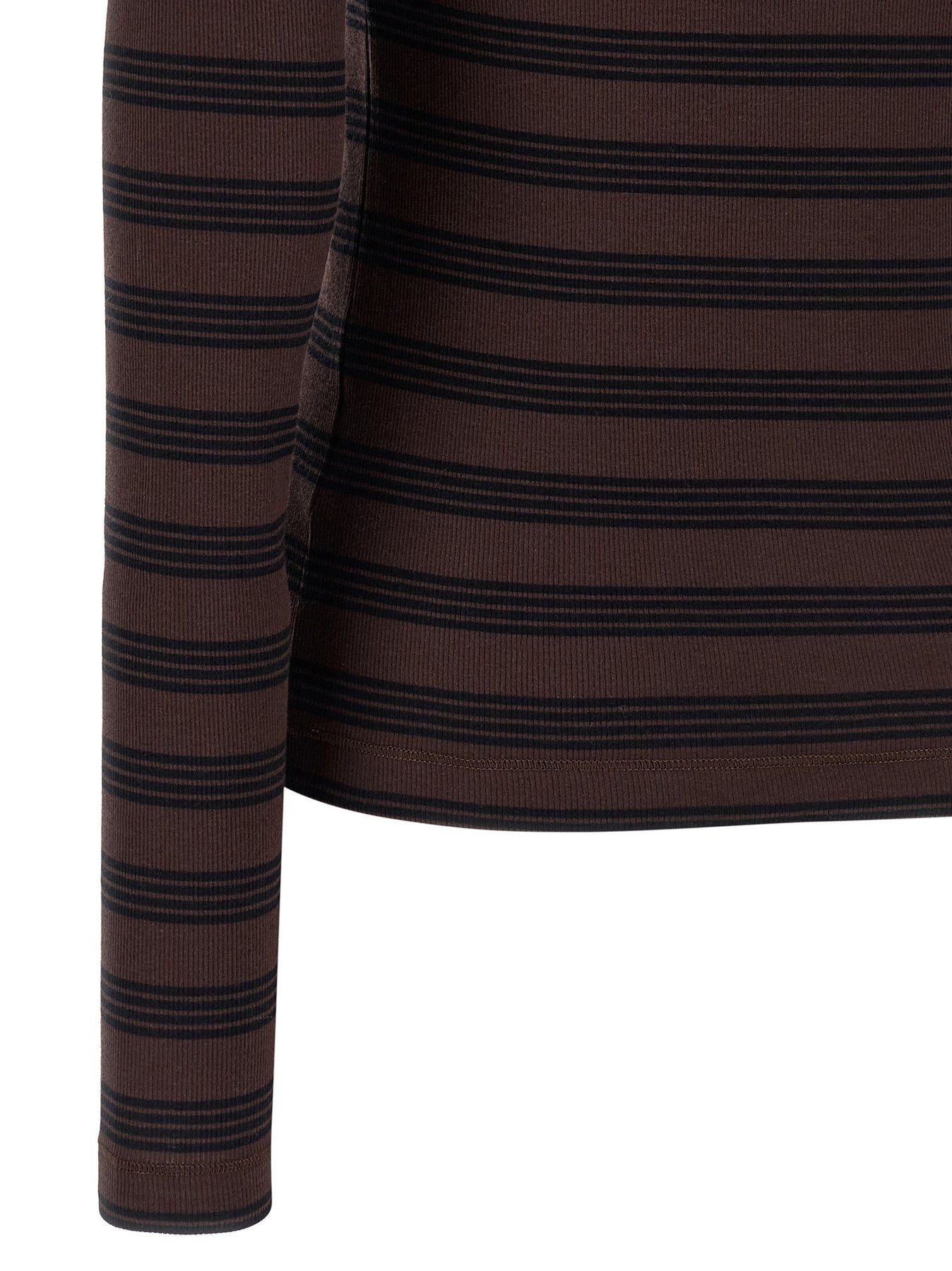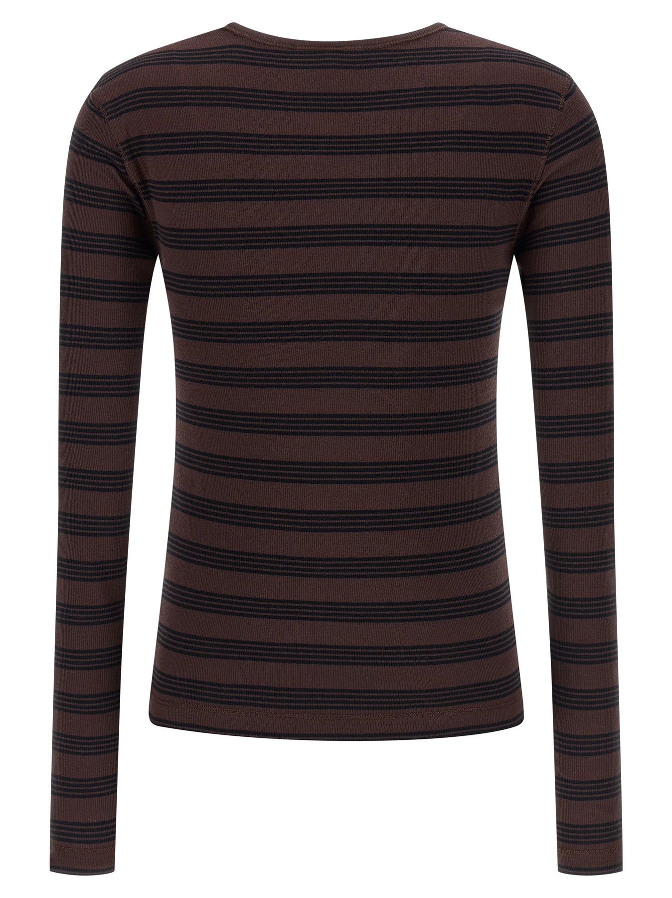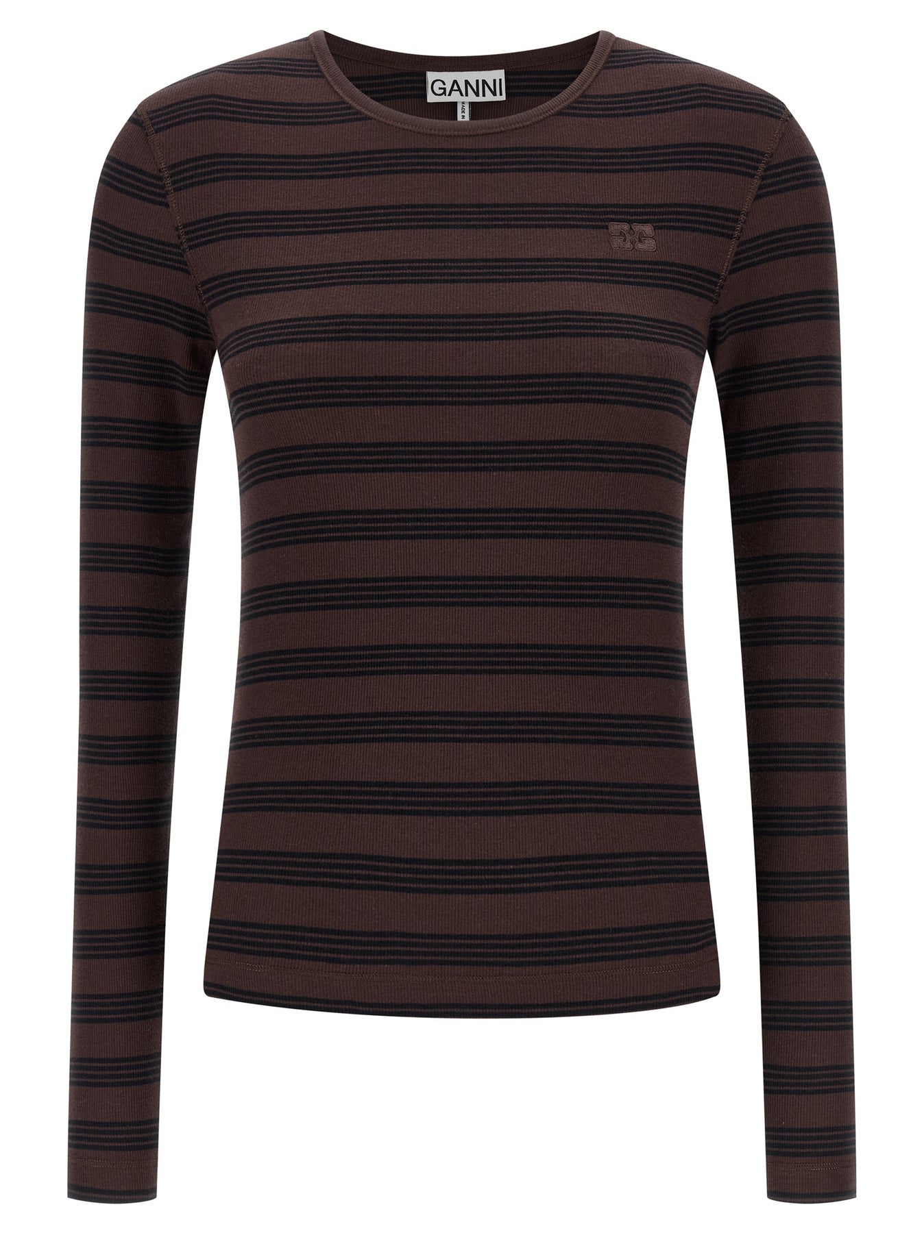 Ribbed stretch cotton sweater with crew neck, front embroidery, long sleeves.
