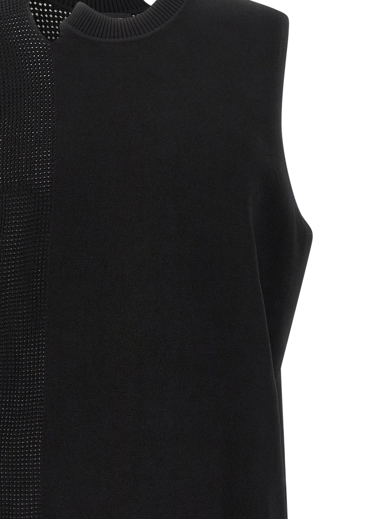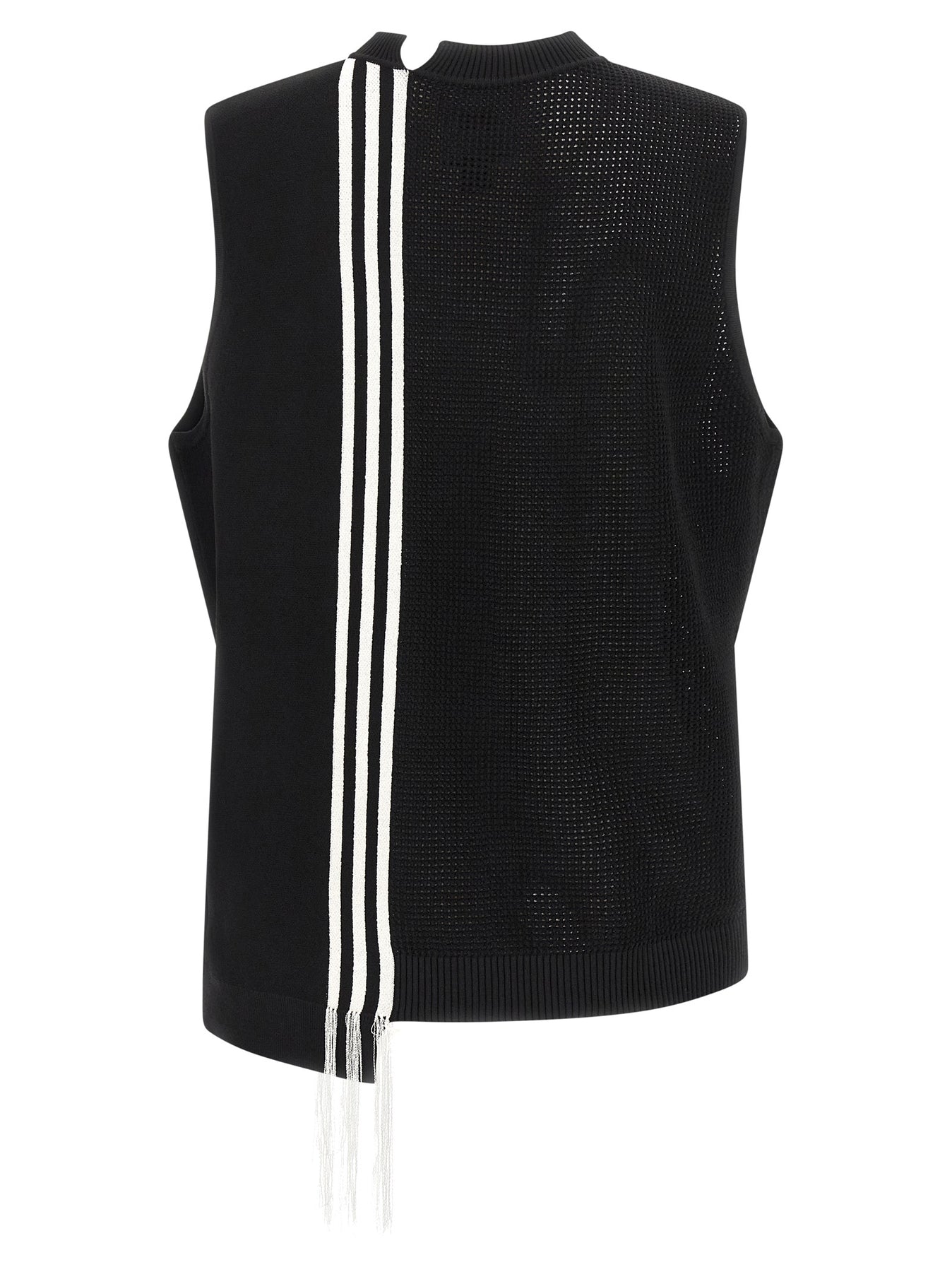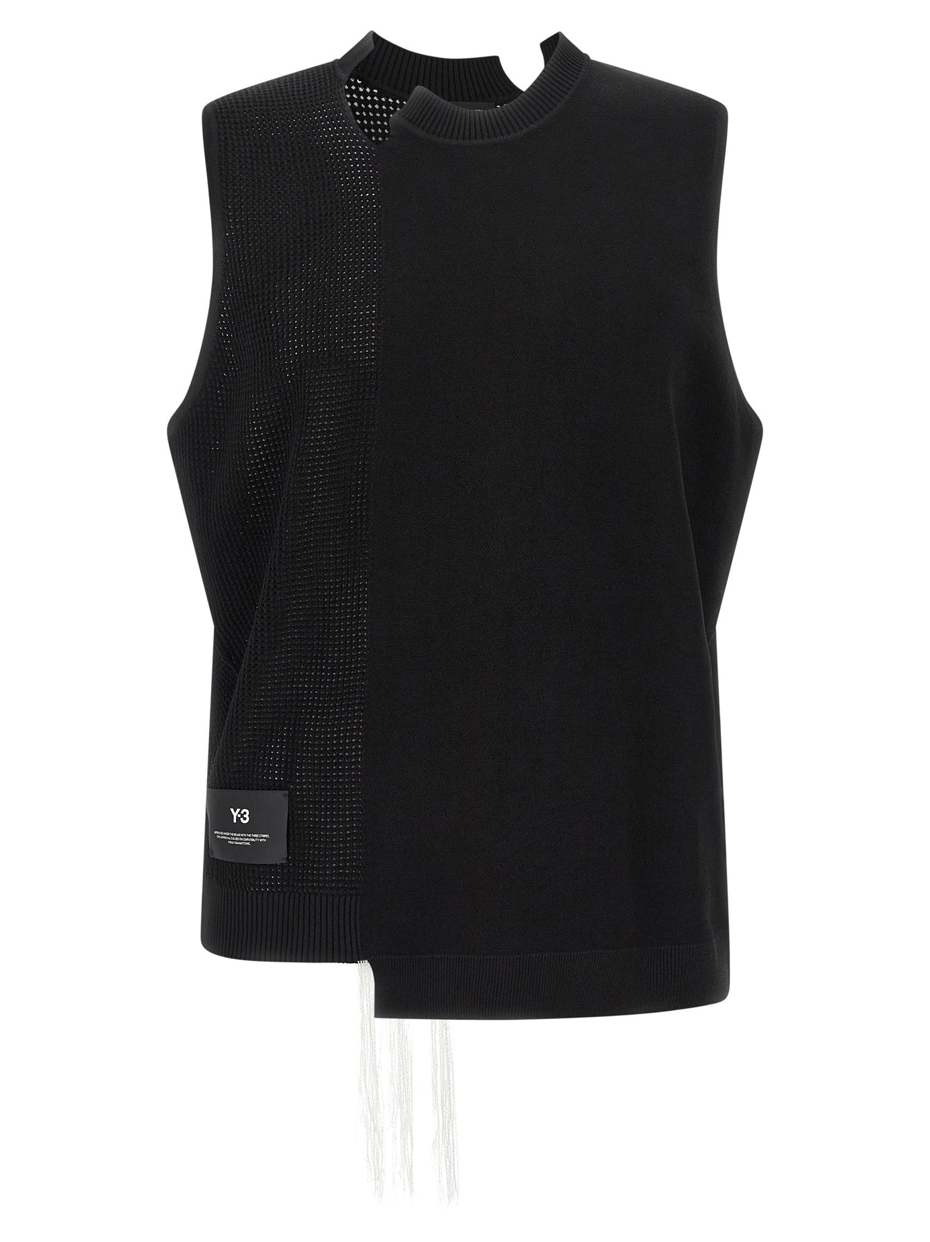Y-3 Gfx' cotton vest with woven structure details, asymmetric crewneck, front logo patch, thermal transfer logo print in satin at the back, and asymmetrical hem.