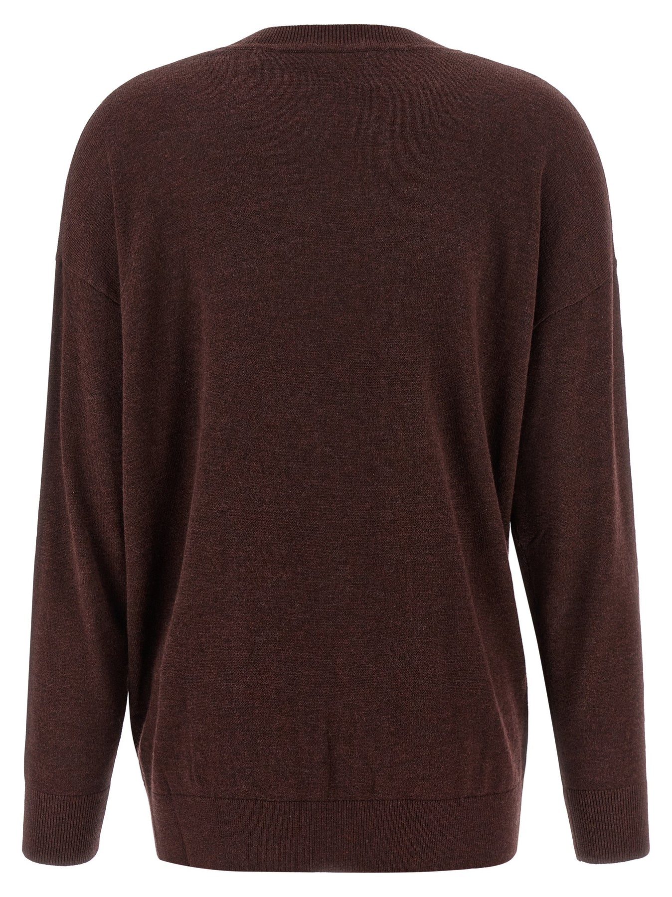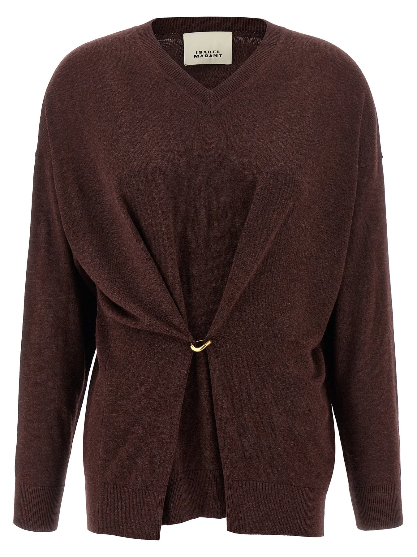 'Chiraz' viscose and wool sweater, removable metal brooch detail on the front, V-neck, long sleeves with cuffs and dropped shoulders.