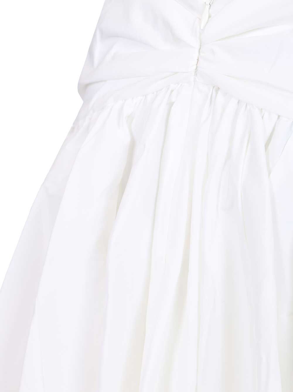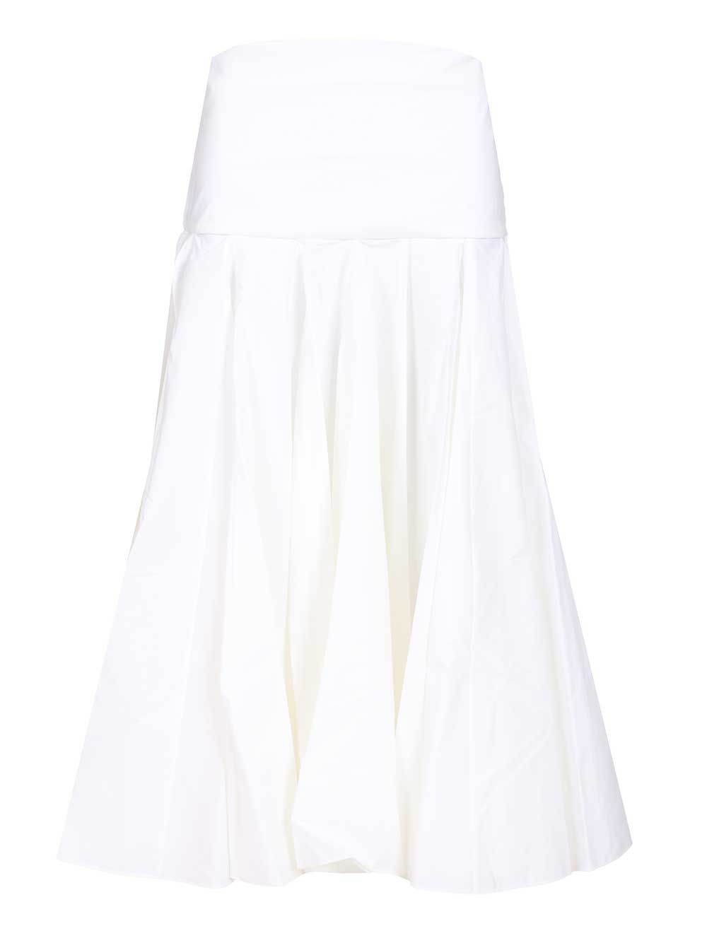 High-waisted. Stretch cotton. Draped waist. Flared below the hips with godets. Mid-calf length at the front. Hook closure at the back.