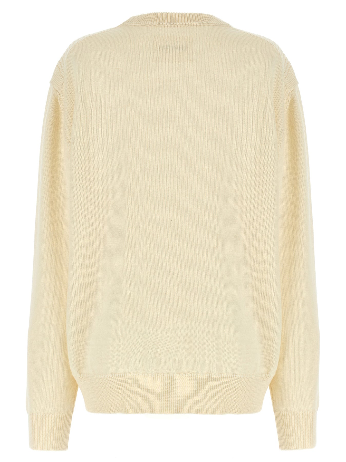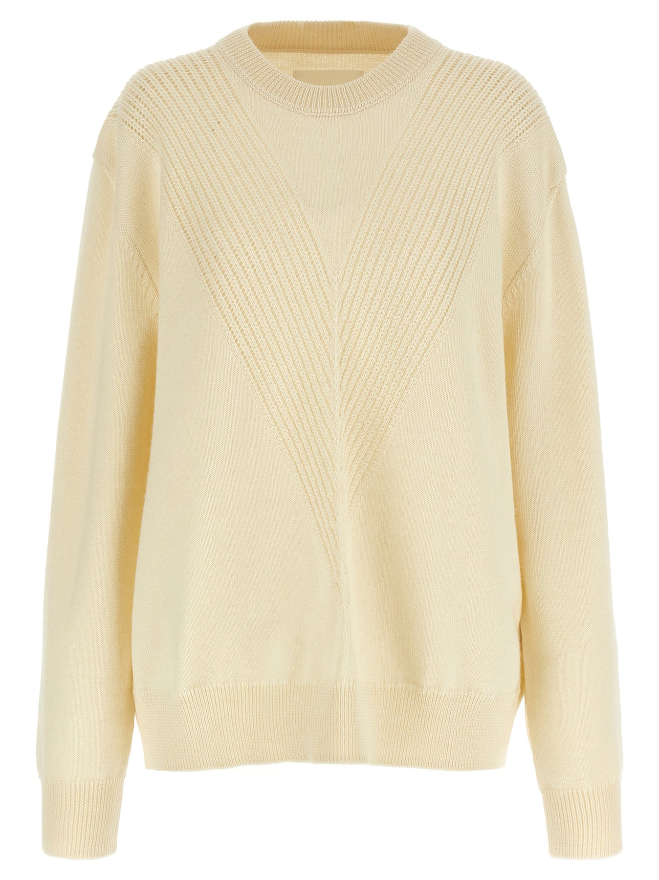 Knitted wool sweater, crew neck, long cuffed sleeves and dropped shoulder.