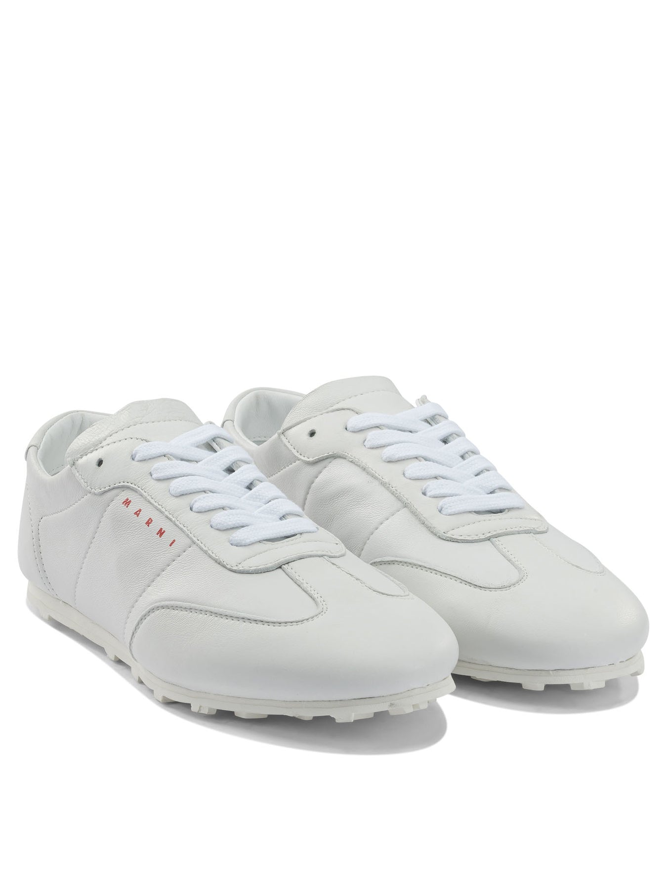 Marni's "Softy Soccer" sneakers blends the sporty spirit of retro footwear with a contemporary design, offering an accessory that perfectly integrates comfort and style. Crafted in a soft nappa leather, this low-top sneaker is the marriage of sophisticated aesthetics and everyday practicality, ideal for those seeking an essential design without sacrificing comfort. A versatile option for women who like to stand out with elegance and simplicity. || - Low-top sneaker - Soft nappa leather - Inspired by retro designs - Slipper-like comfort - Flexible rubber sole - Unlined unstructured upper