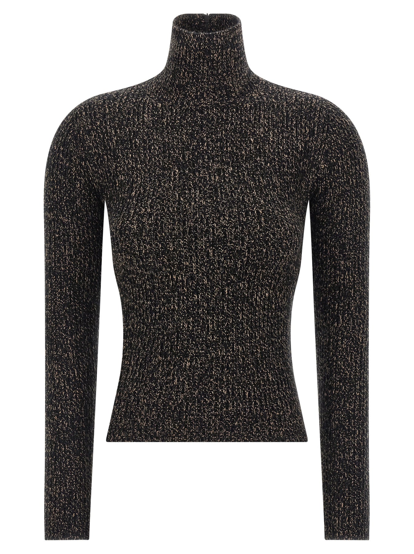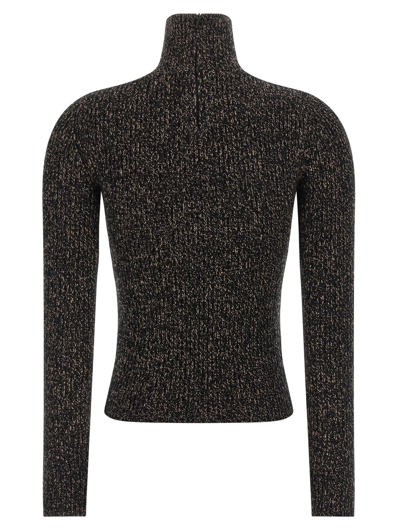 'Azulene1234' turtleneck sweater in ribbed wool and cashmere stretch mouliné yarn, high neck, long cuffed sleeves, back zip closure.