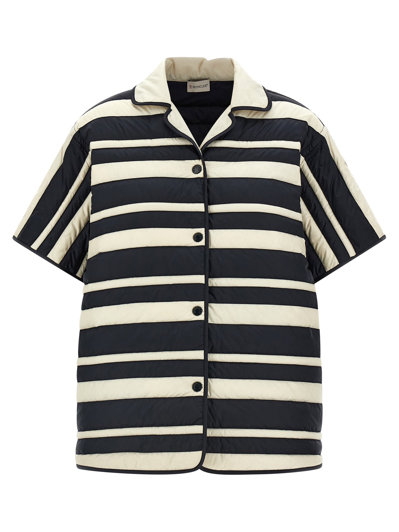 Shirt in technical fabric slightly padded with feather, snap button closure, V-neck, short sleeves with logo patch.