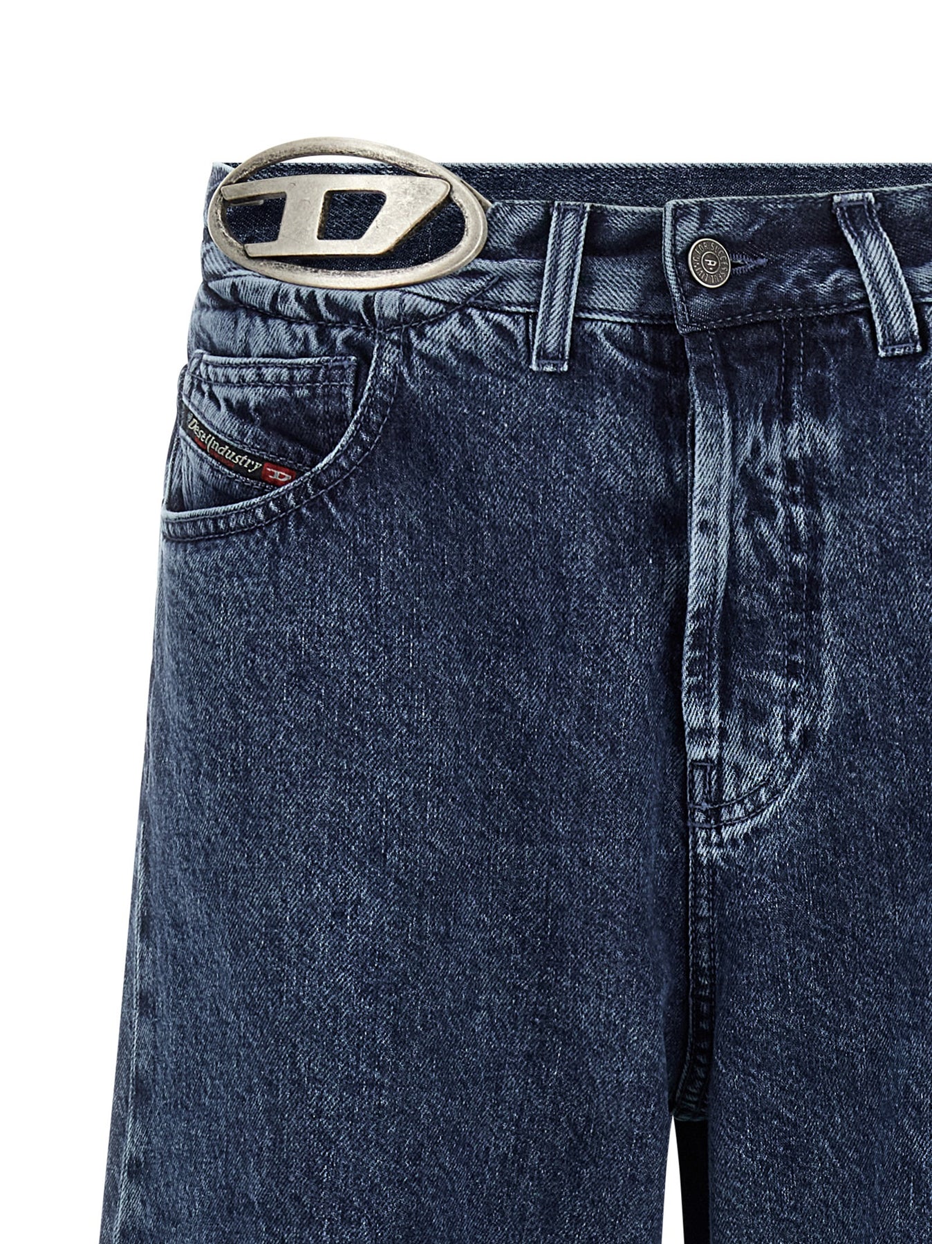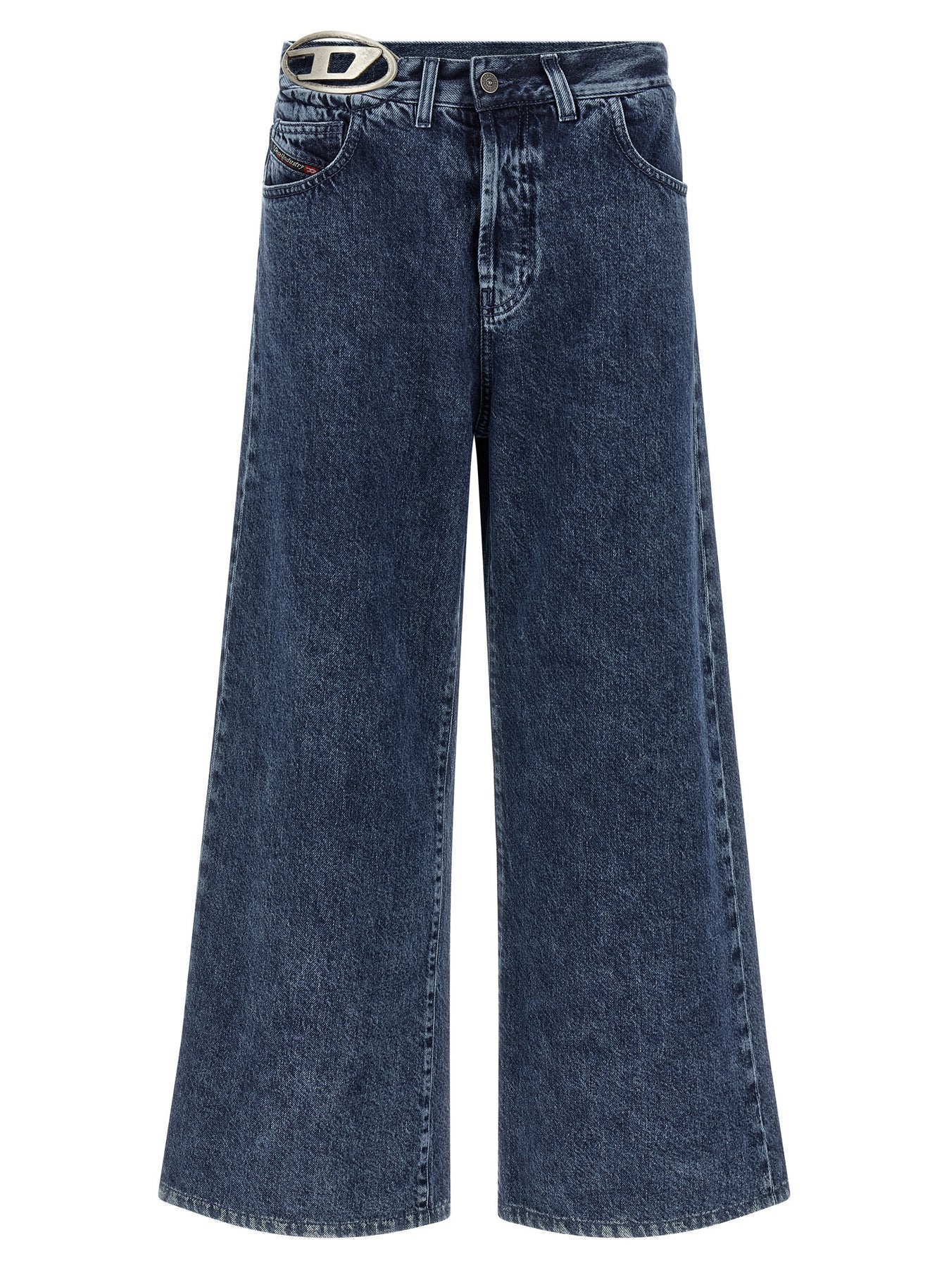 '1996 D-Sire-S4' cotton and lyocell blend denim jeans, low waist, low crotch and extra-long wide leg, cut-out metal Oval D logo detail at the waist, front button closure, five pockets, back logo tag. SUSTAINABLE: This product is made of regenerated cotton.