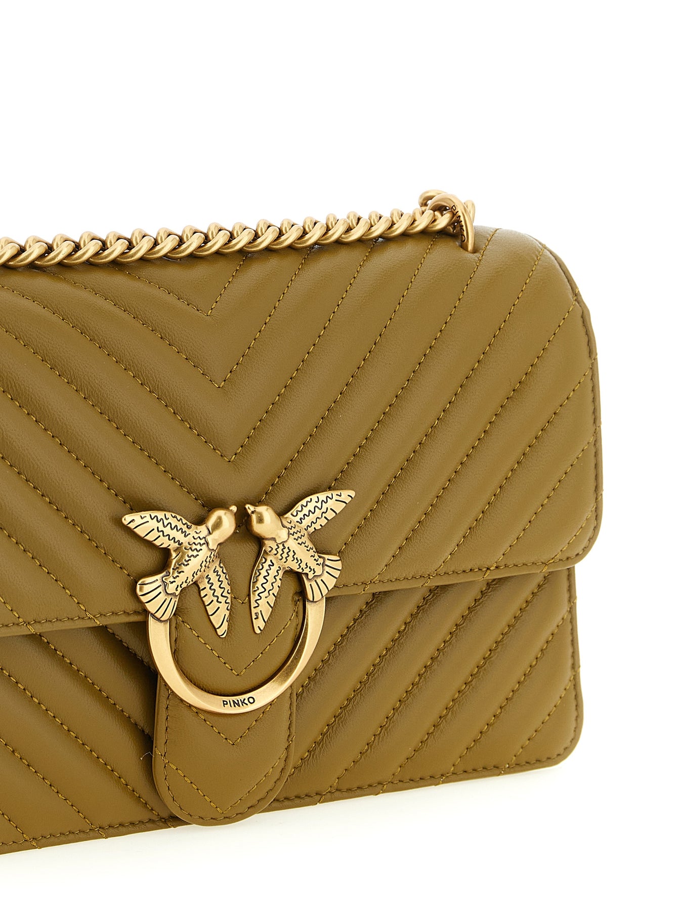 'Love One Classic' quilted nappa leather crossbody bag with chevron pattern, interlocking flap closure with front metal 'Love Birds Diamond Cut' buckle, side gussets, microsuede lining, sliding chain shoulder strap with leather shoulder strap.