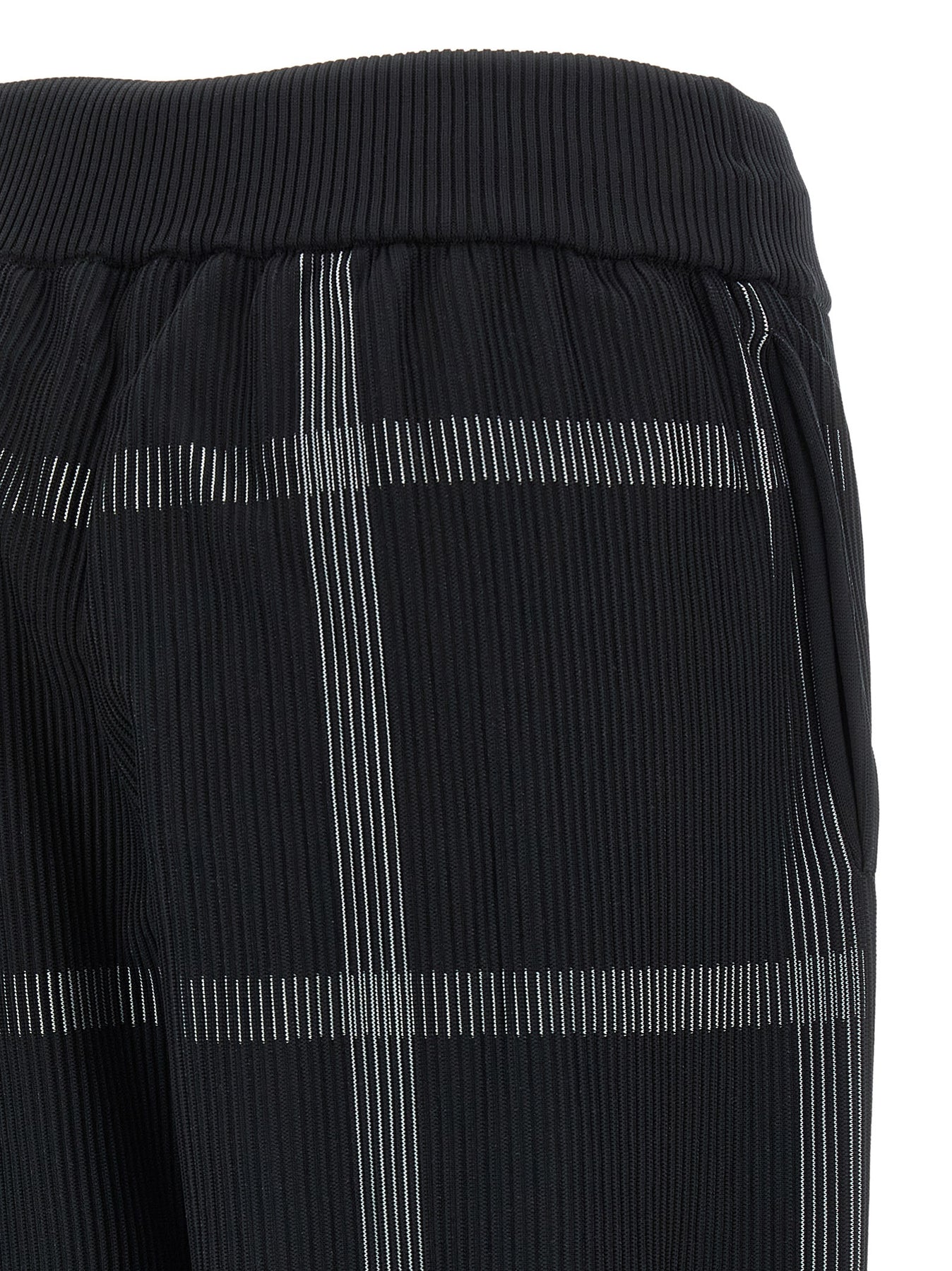 'Crossing Knit' pants in ribbed knitted fabric with check pattern inspired by the cityscape, wide leg, drawstring elastic waistband, pockets, cuffs on the leg bottom.