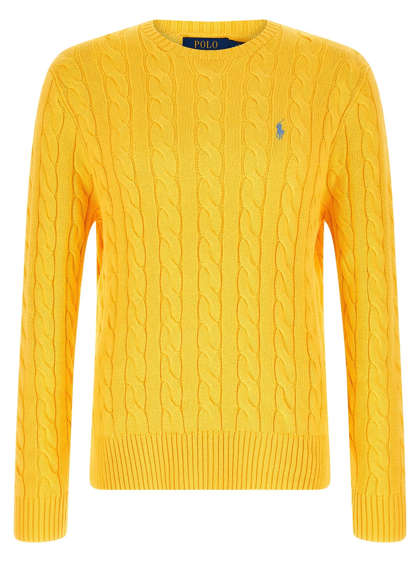 Cotton sweater with texture effect braids, front logo embroidery, crew neck, long cuffed sleeves.