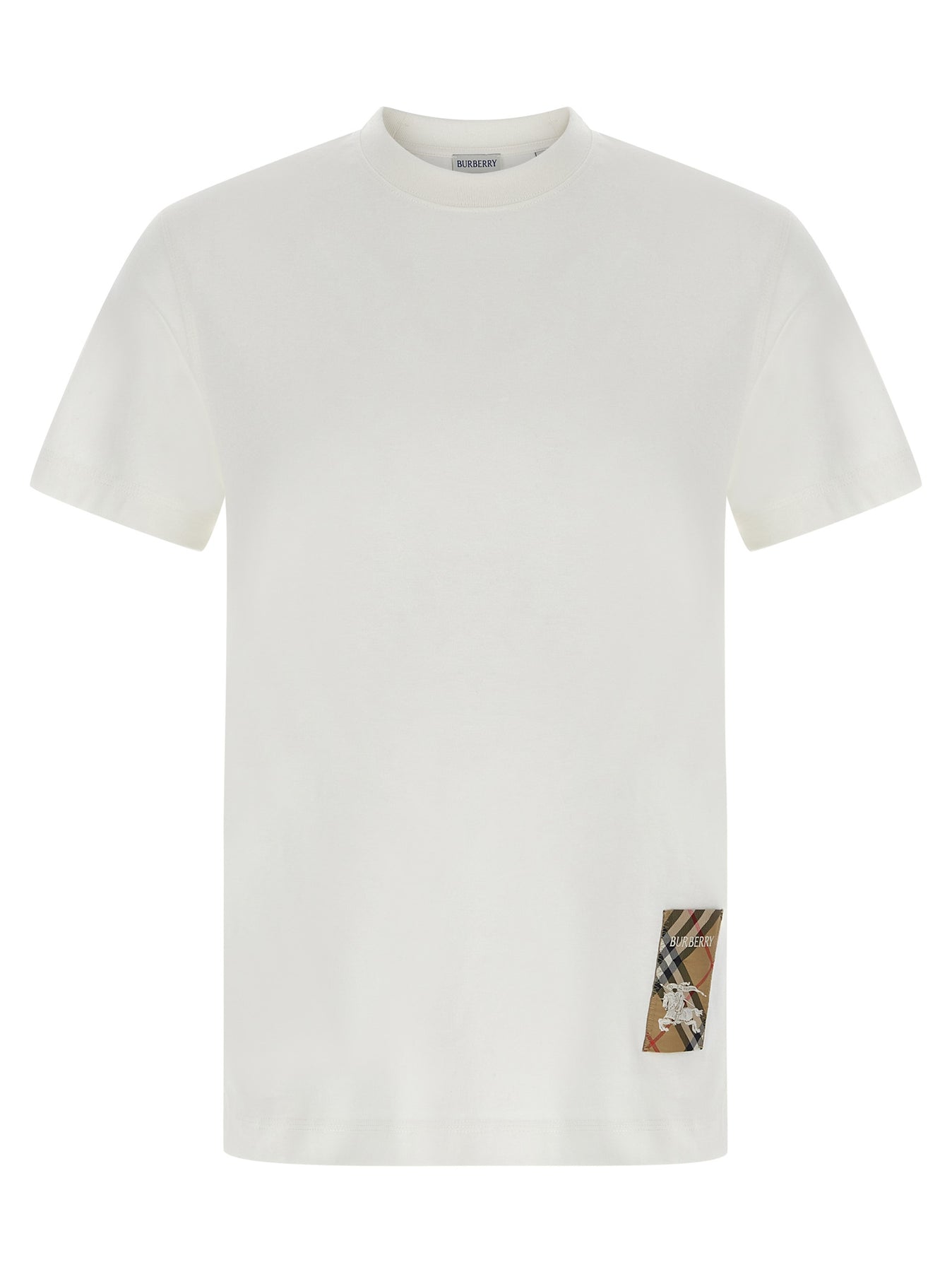 Cotton jersey T-shirt, Burberry Check patch with embroidered logo and ‘Equestrian Knight Design’, crew neck, short sleeves.