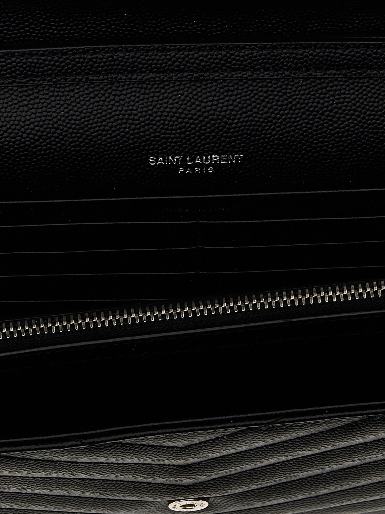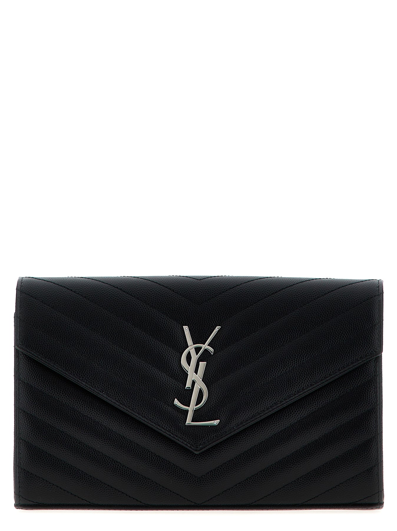 Cassandre' quilted grain de poudre leather clutch bag, magnetic flap closure with front metal logo appliqué, and removable chain shoulder strap.