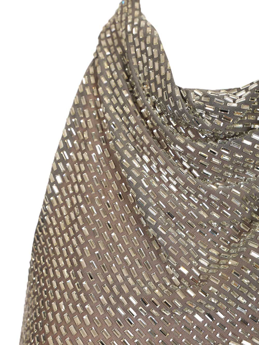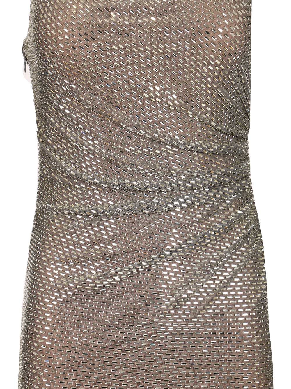 Long dress in stretch fabric by Self-Portrait, deep back neckline, studded with rhinestones, halterneck and side fastening with hidden zip.