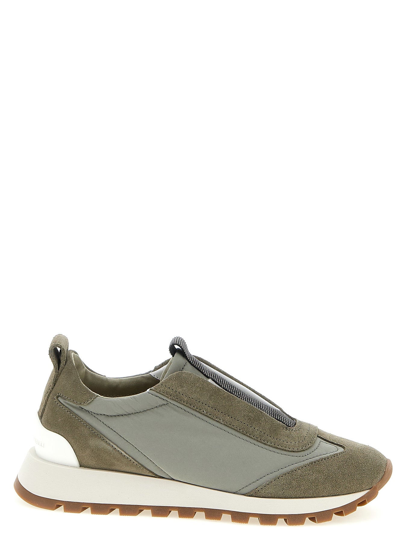 'Runners' sneakers in techno fabric with tone-on-tone suede inserts, slip-on model with elastic tongue and Monile 'Precious Detail', TPU rubber tread, micro lightweight sole.