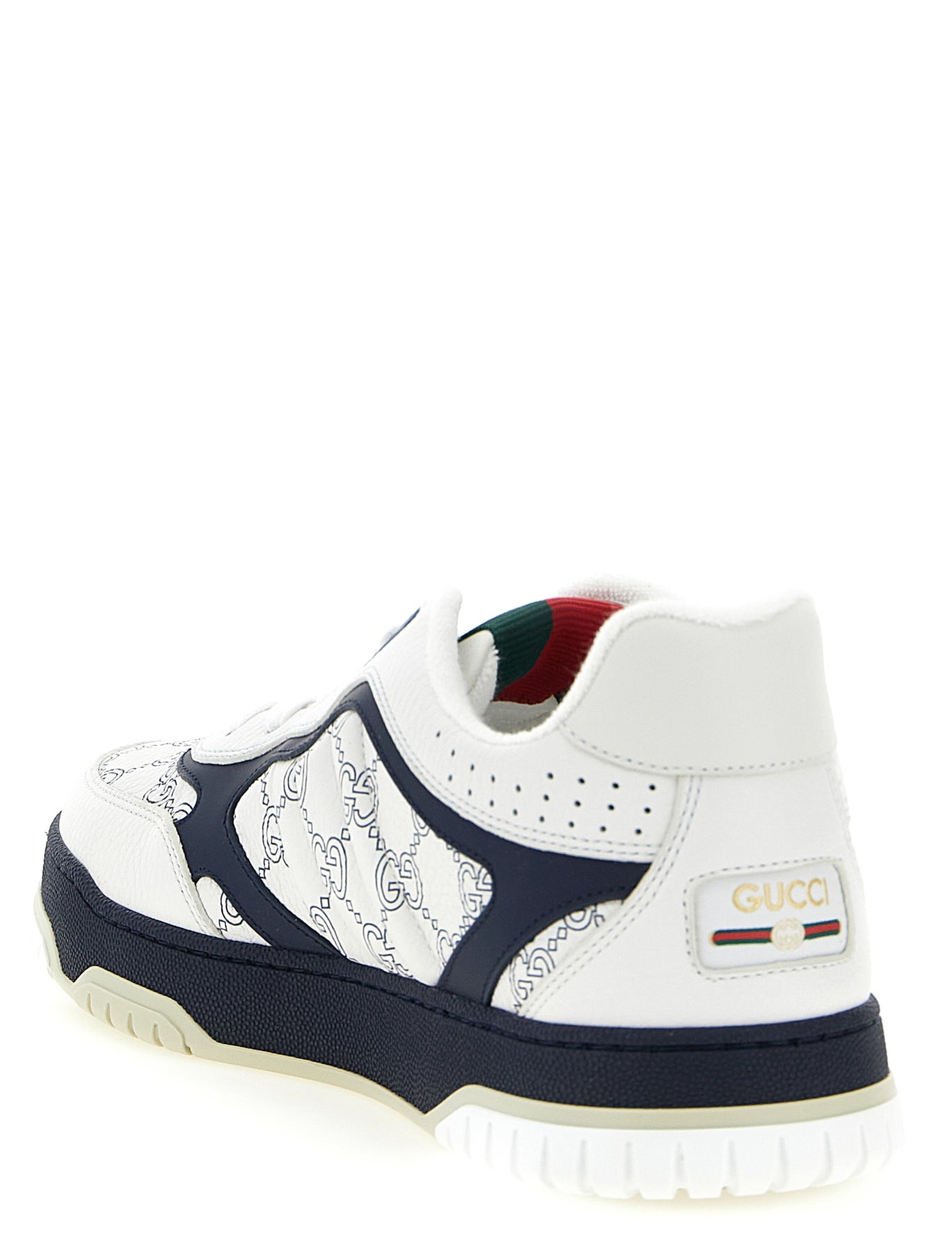 'Gucci Re-Web' hammered leather sneakers with GG profiled pattern, fabric lining, grosgrain Web ribbon tongue, Web tag with Gucci lettering and GG crossing on the heel, lace-up closure, rubber sole.
