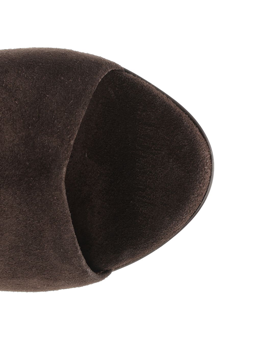 Paris Texas "Nina" open-toe suede mules with a covered wedge heel.
