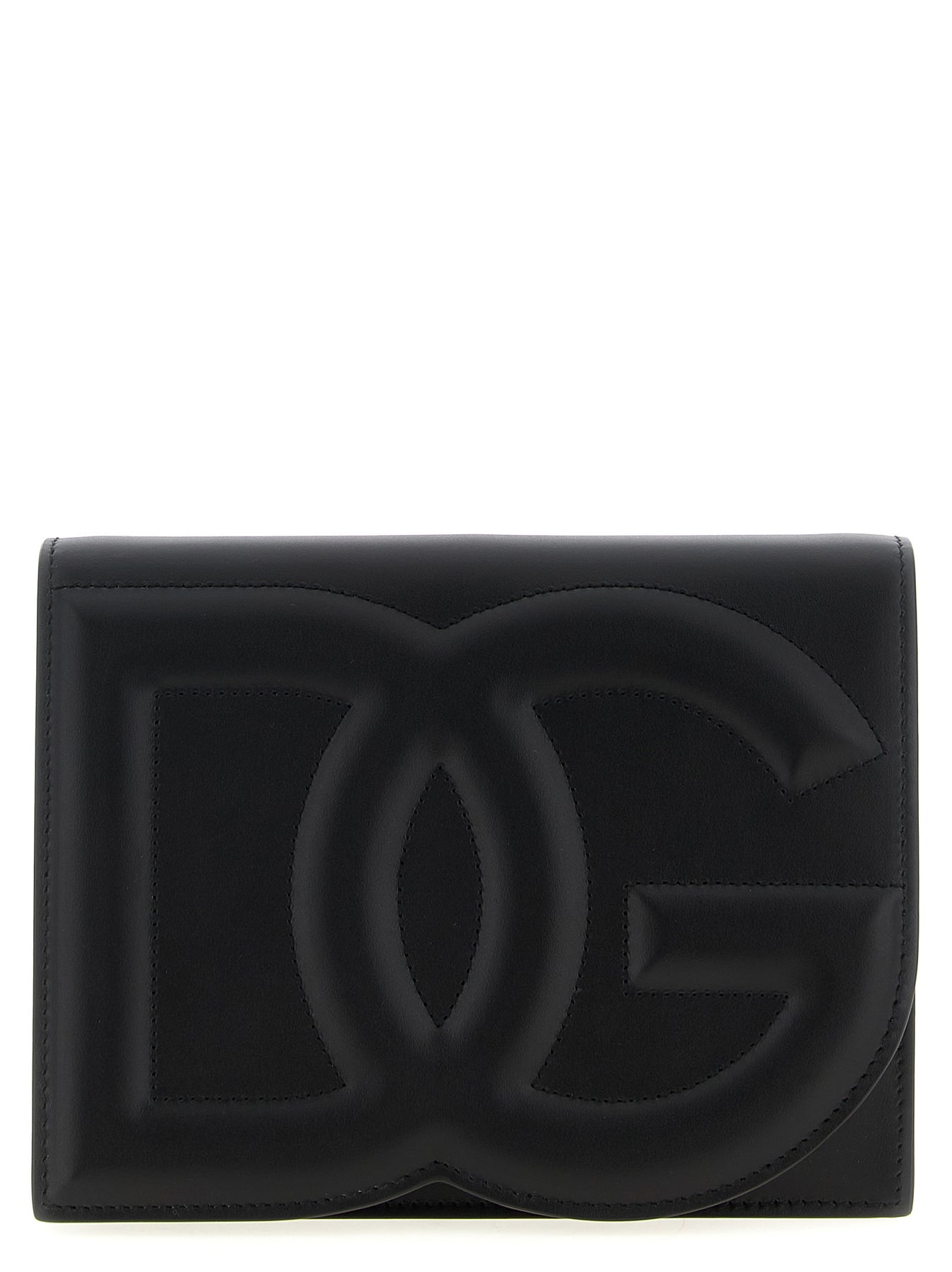 Calf leather crossbody bag with 3D quilted DG logo, adjustable and removable shoulder strap, flap closure with concealed magnet, alcantara lining, zip pocket and strap and snap button compartment.