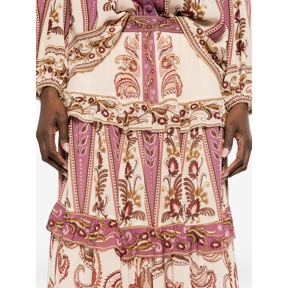 purple paisley print tiered design border trim