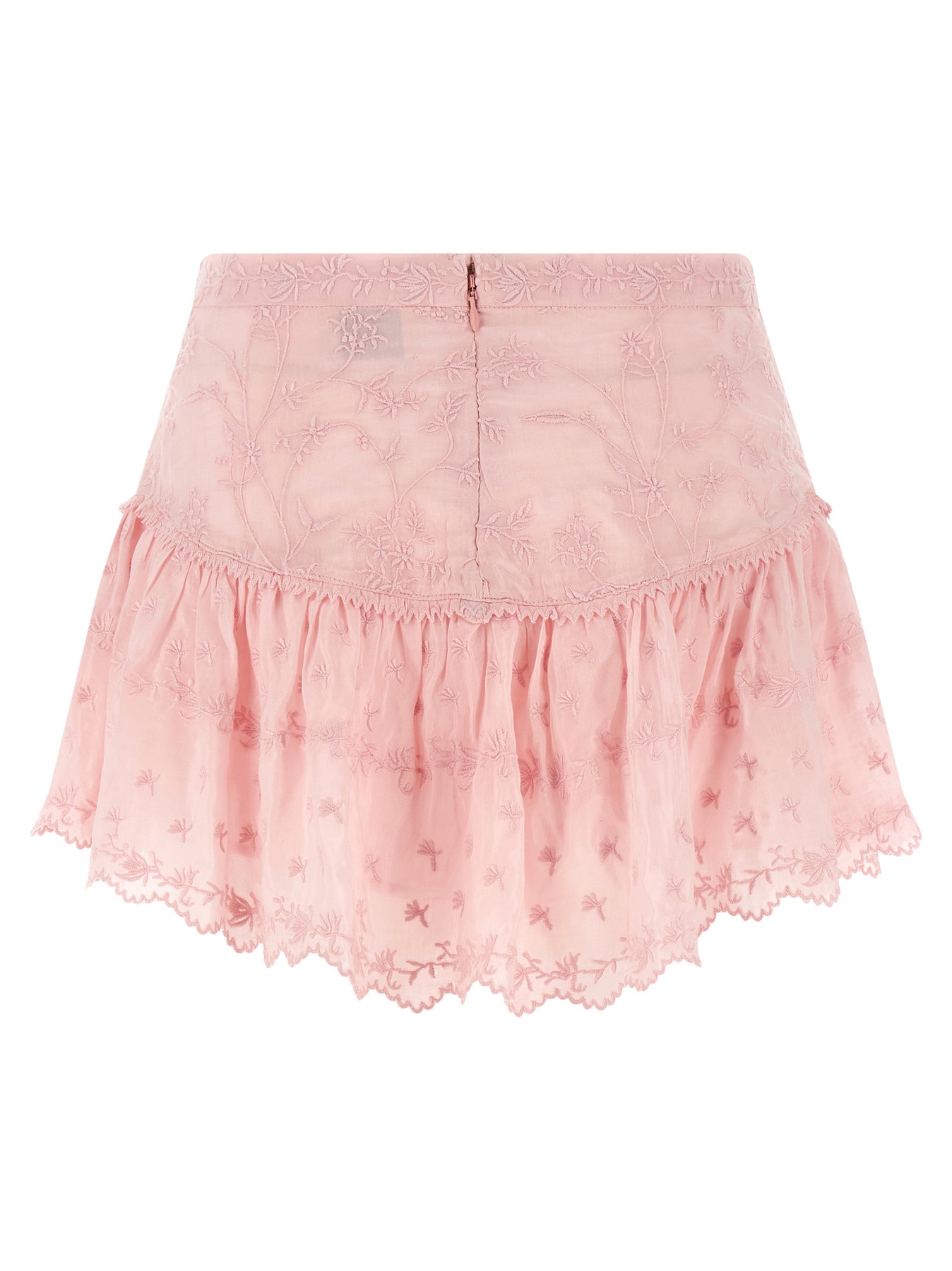 Double layer 'Zoelia' shorts with cotton and silk skirt upper part with tone-on-tone floral embroidery, asymmetrical hem and smooth cotton lower part and back zip closure.