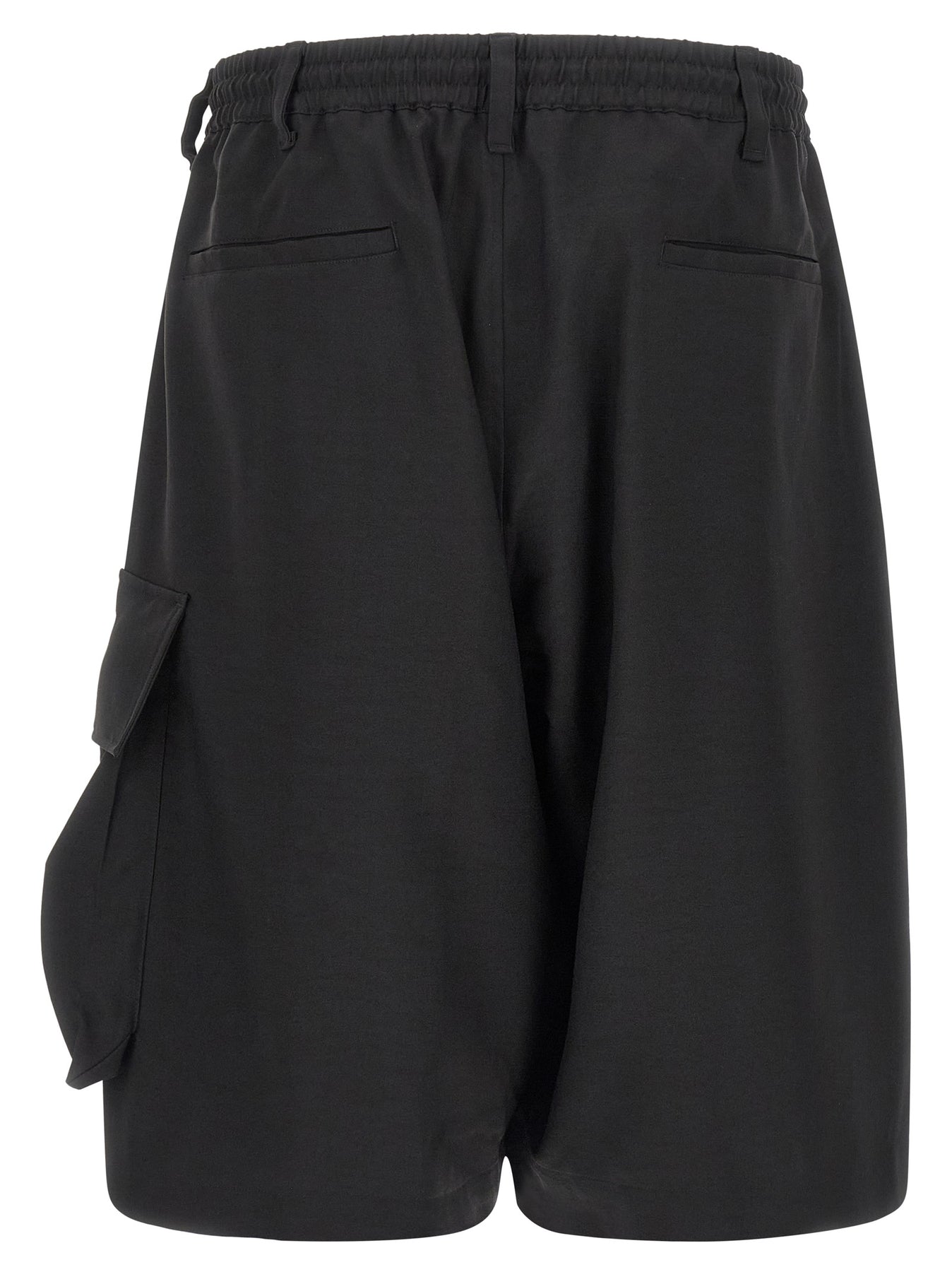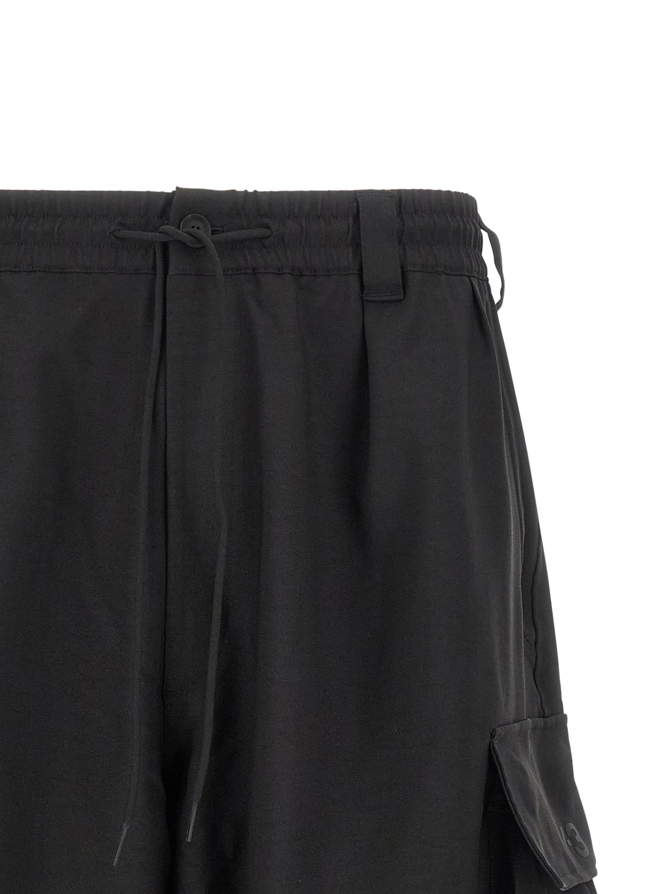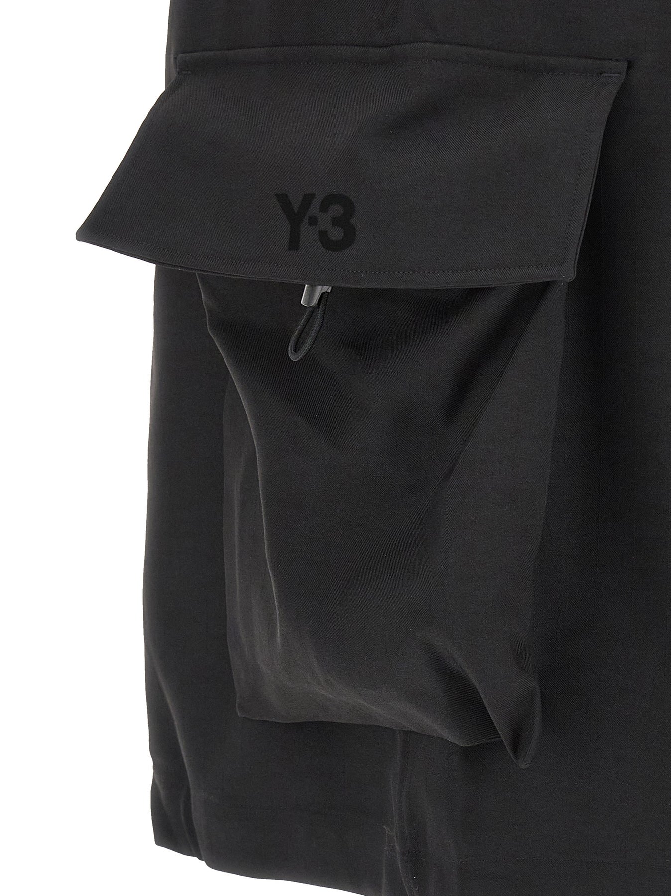 'Y-3 Sport Uniform' cargo twill shorts with side pocket and tone-on-tone hot transferred Y-3 logo, drawstring elastic waistband, zip and front button closure, pockets, wide leg.