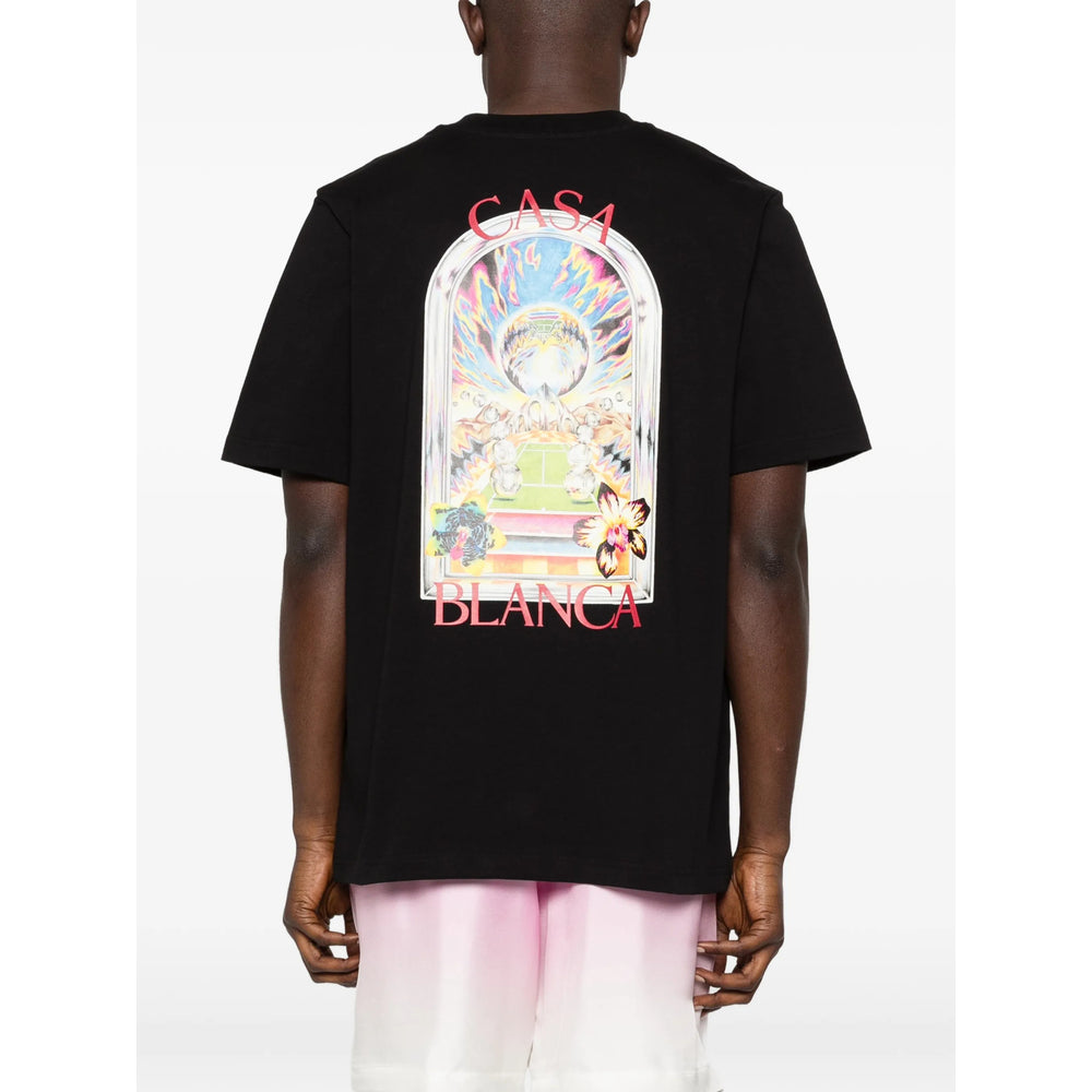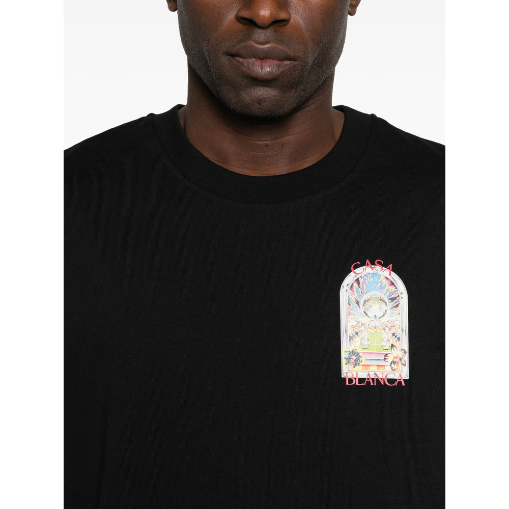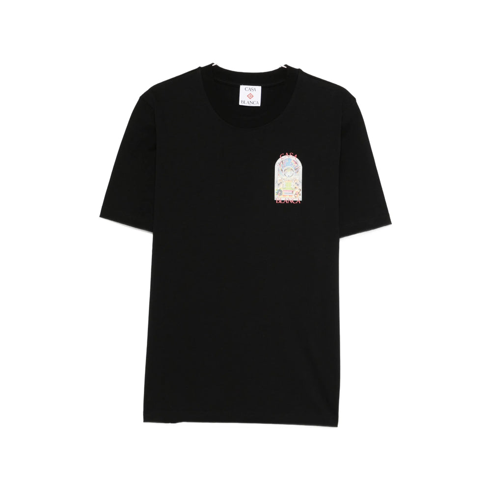 black graphic print round neck short sleeves