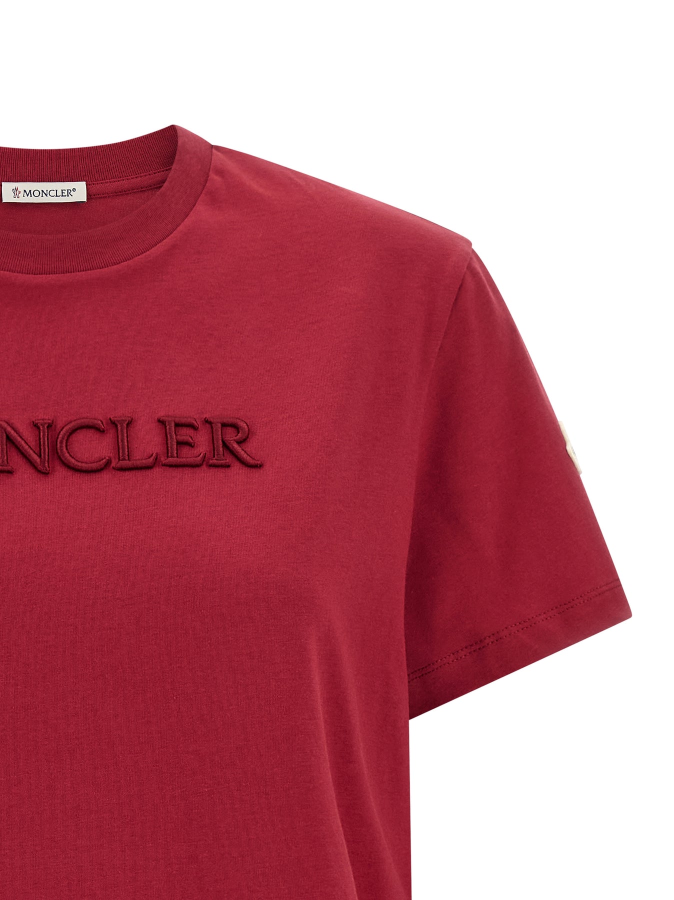 Cotton jersey T-shirt with tone-on-tone 3D logo embroidery on the front, crew neck, short sleeves with felt logo patch appliqué.