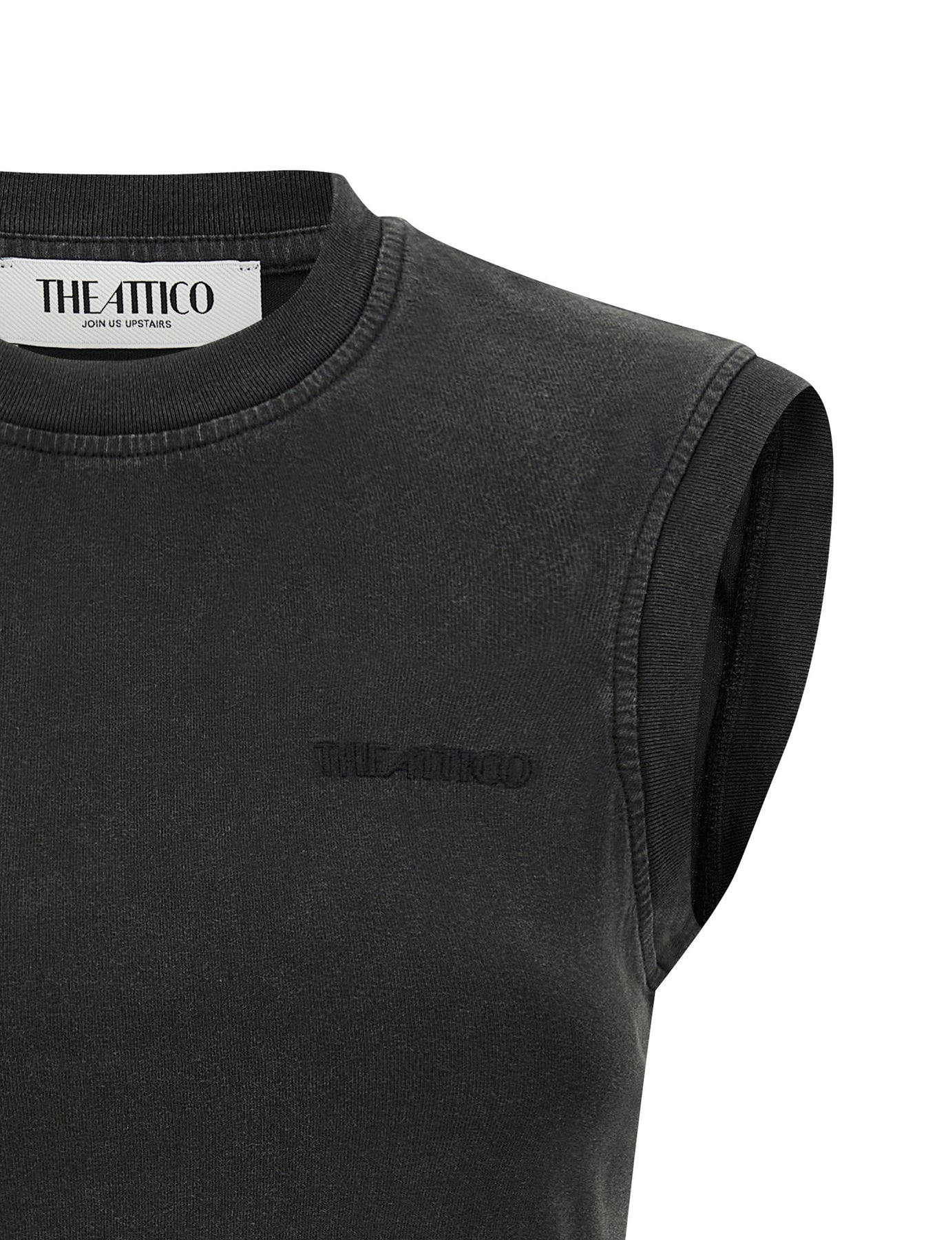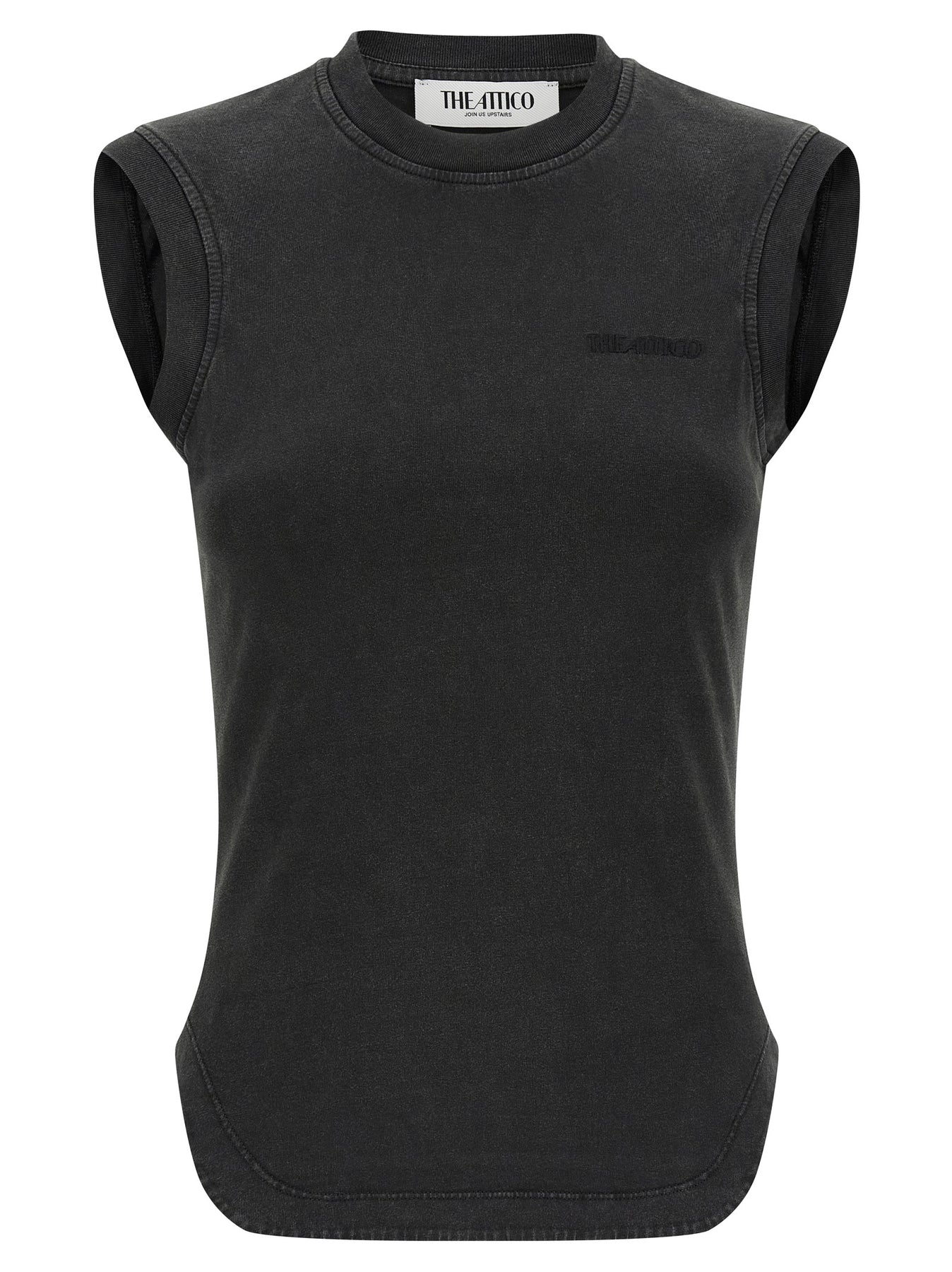 'Reese' cotton top with tone-on-tone embroidered logo on the front, crew neck, shaped hem.
